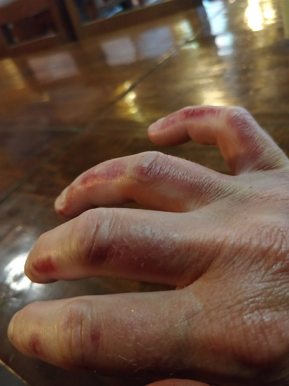 Later on in the evening I also noticed I had developed frost nip on my right hand. The photo below is it healing…I didn’t want to gross anybody out by putting up how it initially looked – jeeso it’s tough at the top!