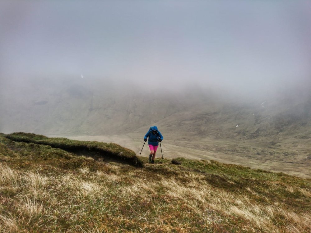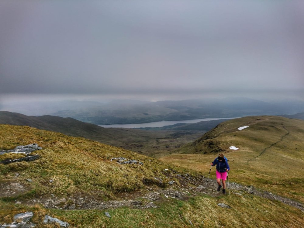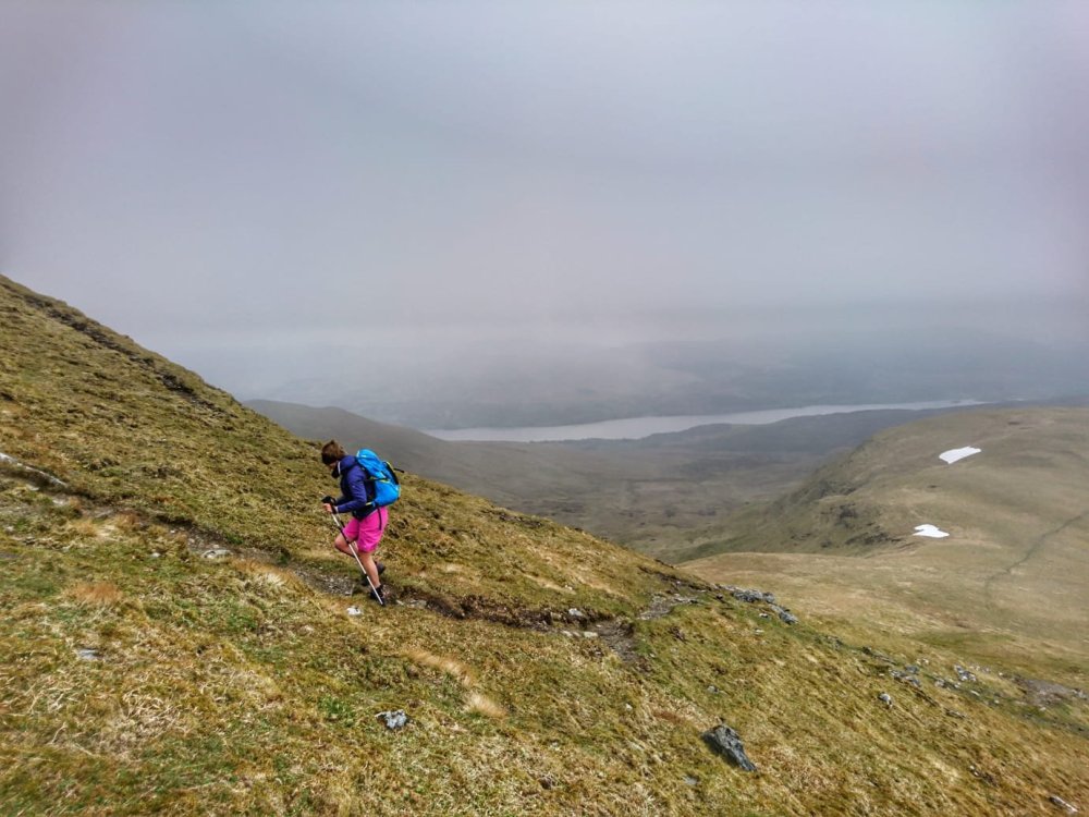 We descended quickly and the route back was rougher going. It was steep, it was wet, it was boggy, it was cold, it was windy….and then it was done! Result – another two ✔️✔️ of that list!