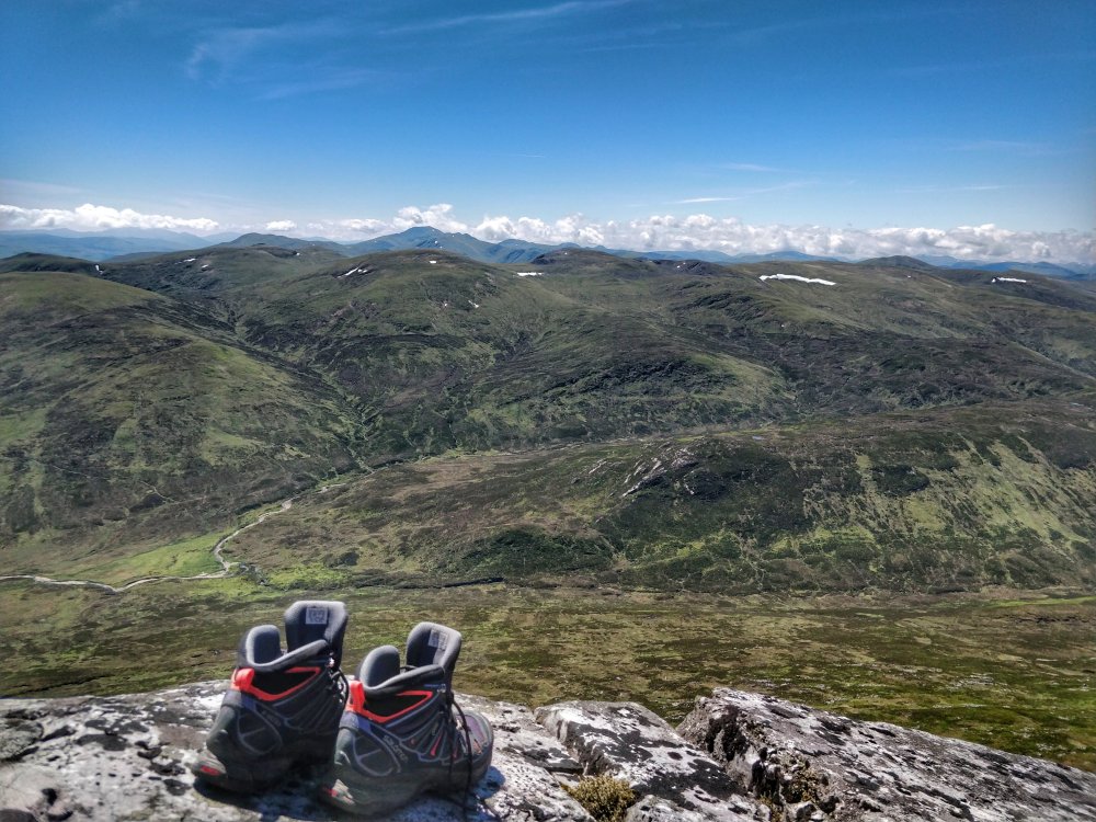 The day was glorious at the summit so the boots came off, and the picnic came out and we basked right there in the sun on this beautiful Munro.