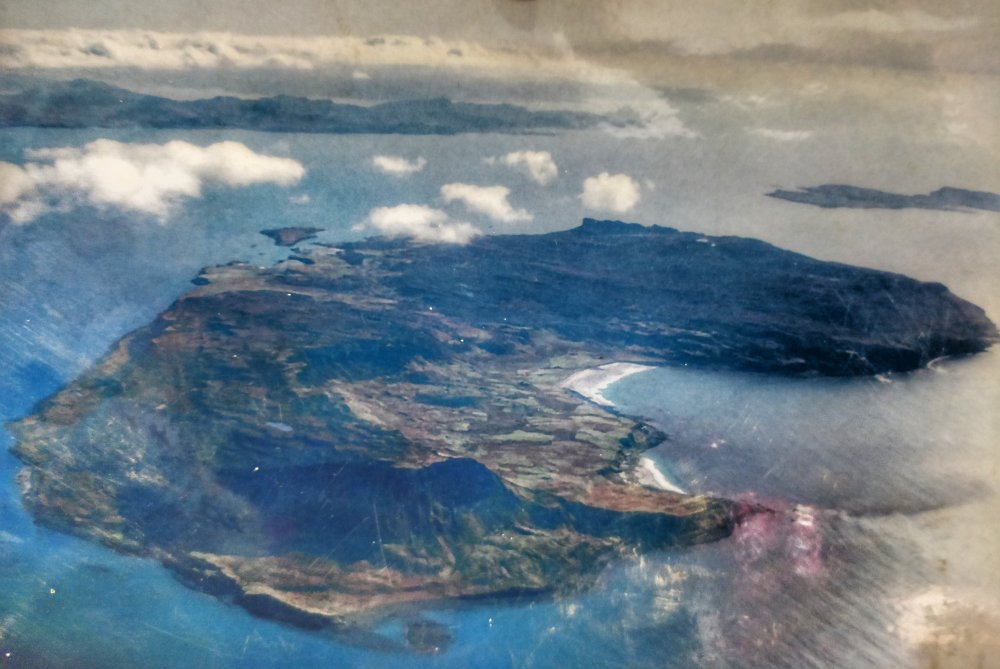 This is an aerial view of Eigg I “borrowed” (read:took a photo of a photo) from the local shop