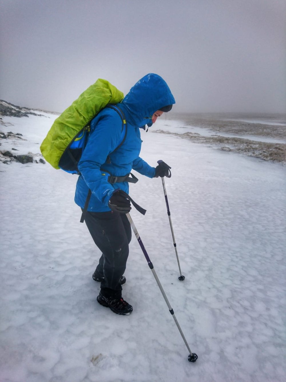 Temperatures at this point were still freezing and just to help with matters it began snowing. The direction we travelled meant we were now being beaten and battered by galeforce winds in a snowstorm…not good for the eyes, overall just not good.