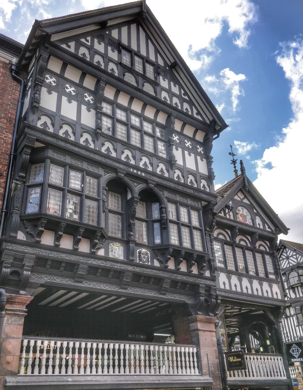 They’re like double decker, black and white shops, one on the ground floor, then another on a raised level above. They have allowed double level shopping here at least since the 13th century.
