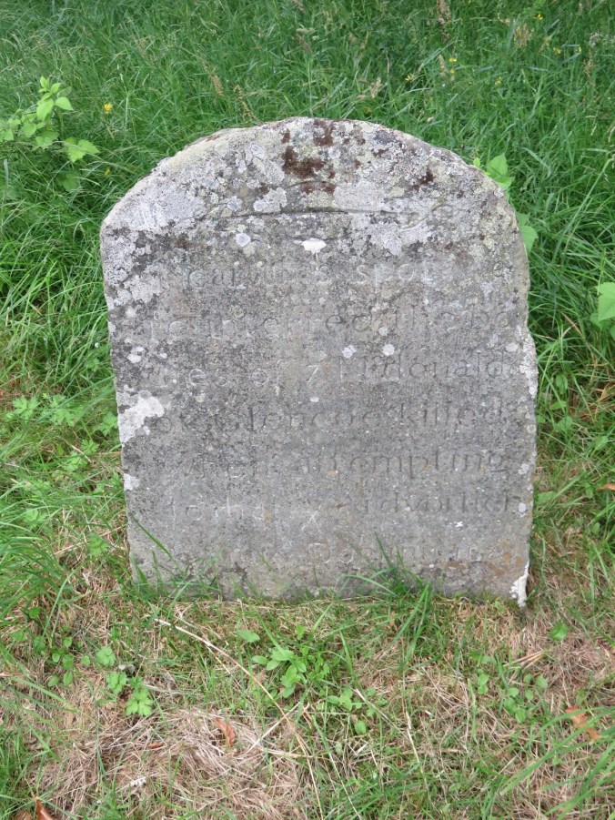 Just after crossing a small stone bridge we spotted a gravestone next to the road.