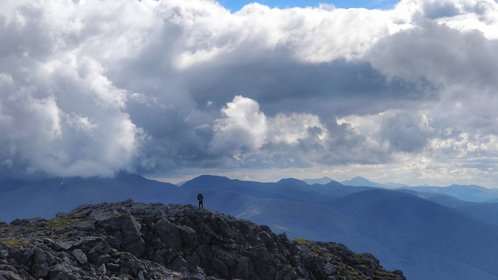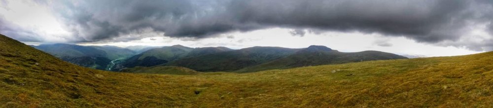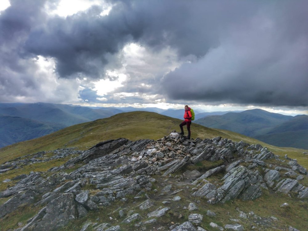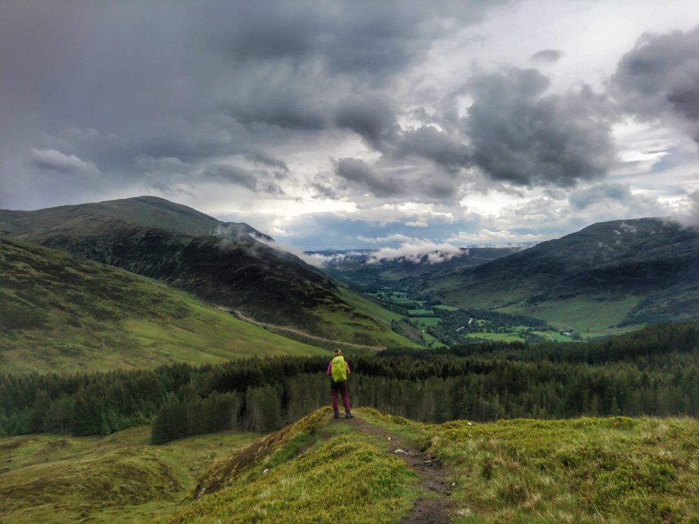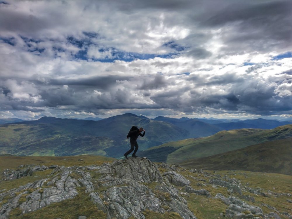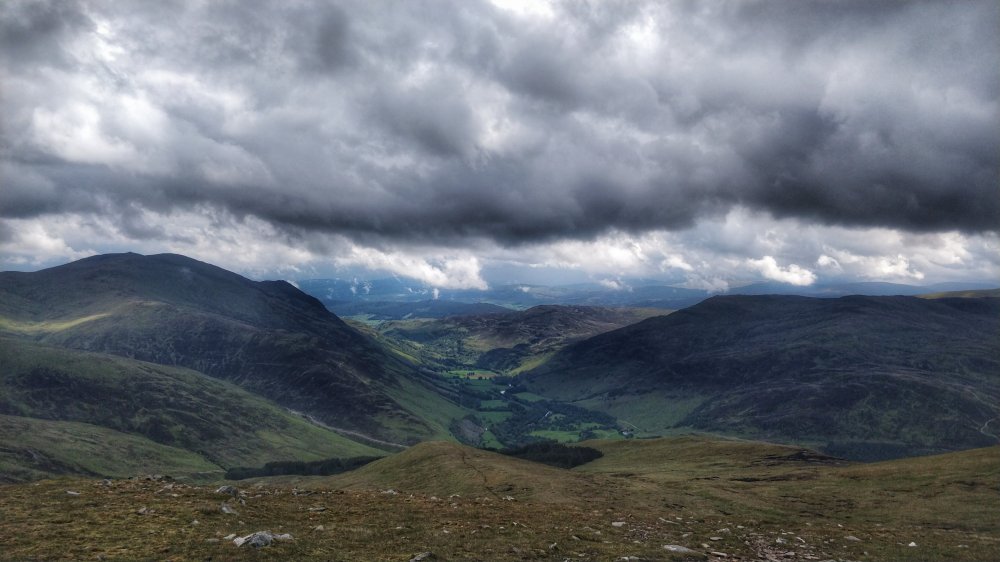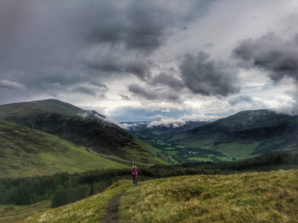 The sky with the dark clouds in them was so captivating and theatrical. We saw over to the Lawer Range, we could even see up to Glen Coe.