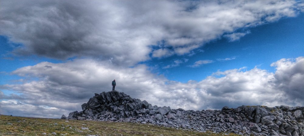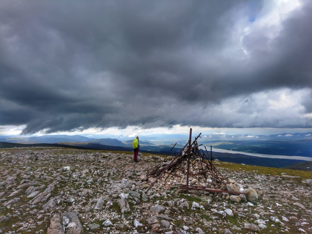 We continued along the path of rocks and boulders until we were at the summit and this cairn was very different to anything I had seen before. It was made from old steel poles, that looked to be old metal fence posts.