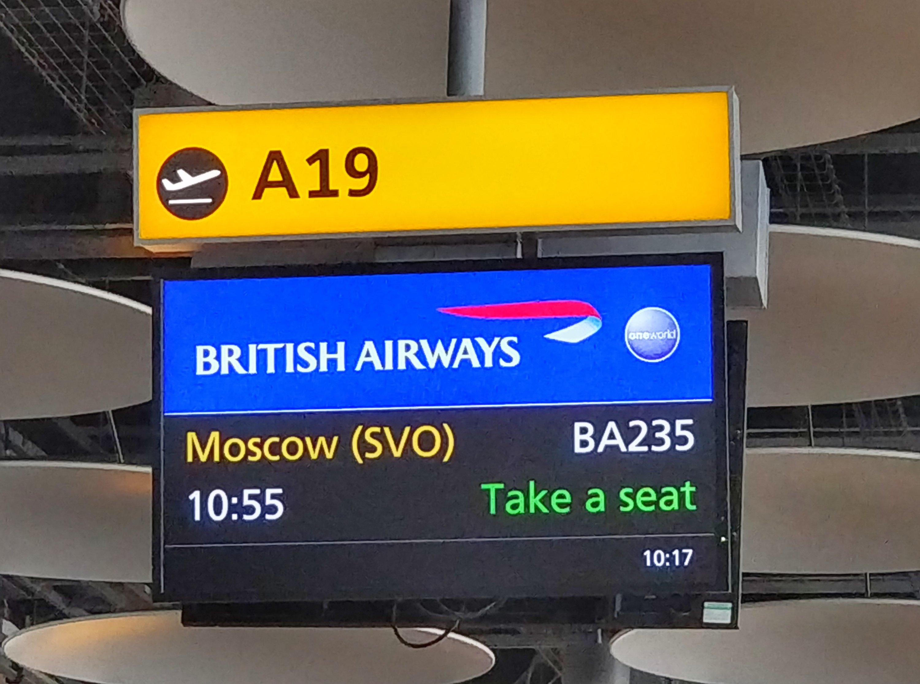 1. Hi Auntie Theresa…so we caught a 8am flight from Edinburgh to Heathrow then an 11am flight to Moscow…flight was meant to be 3hrs 55mins but was under.