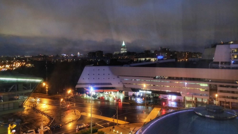 View from window over the lit up city