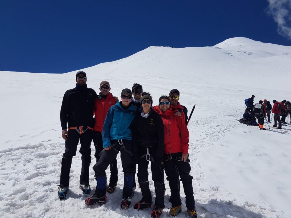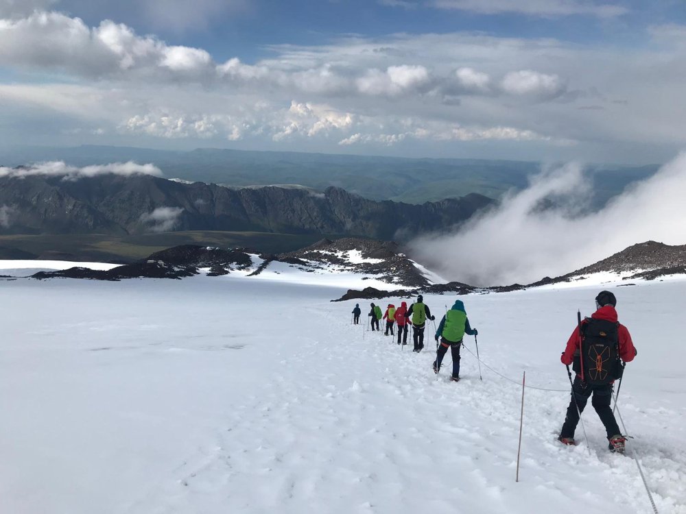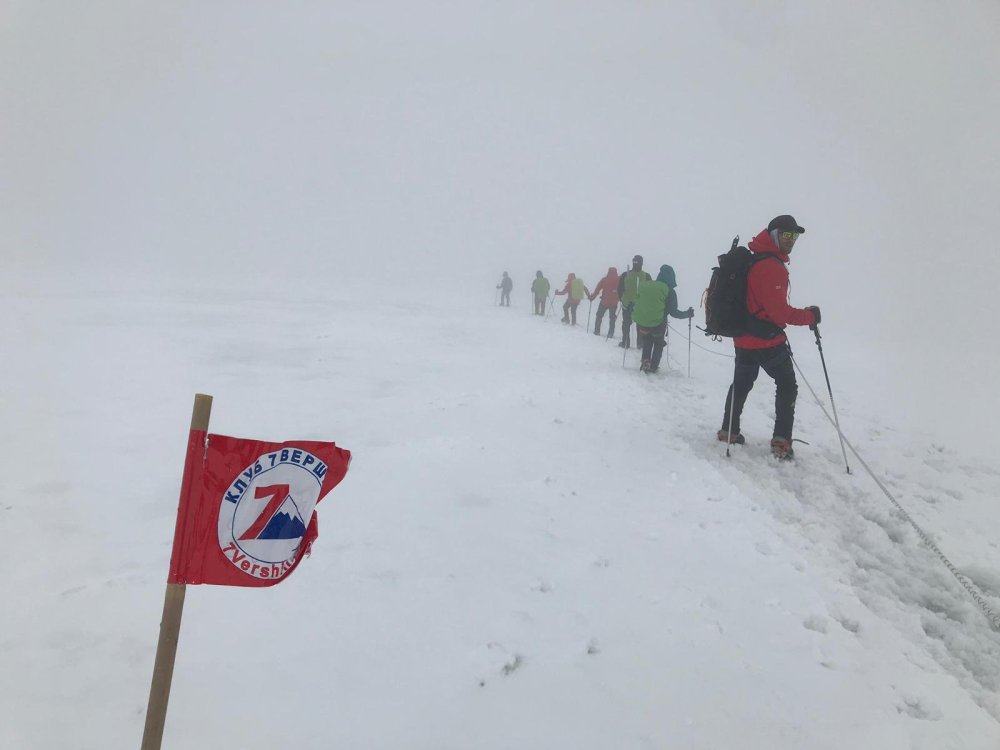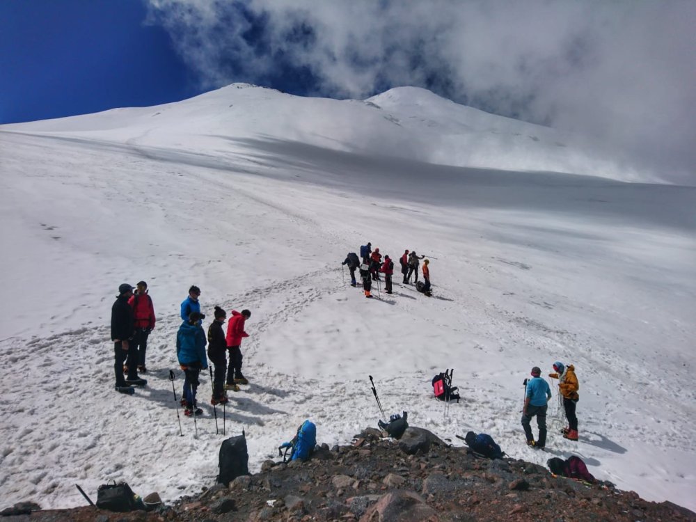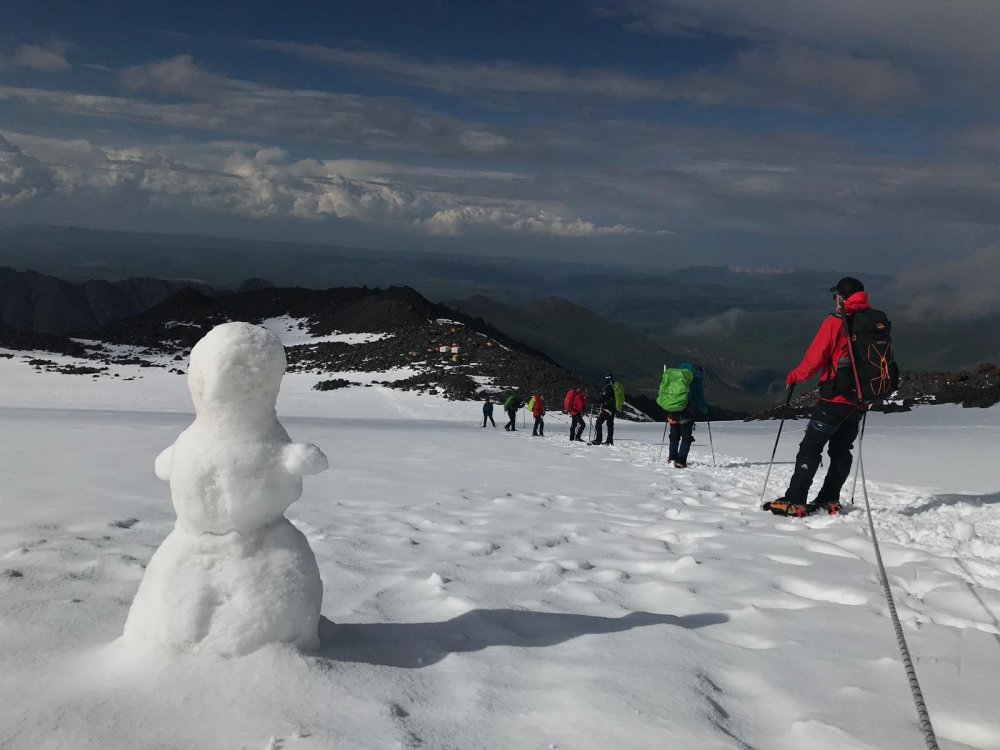 Pity you couldn’t ski down the mountain😜😜..Andy looked a bit better in the photo just hope you recover quickly. Have we seen your Rusdian guide yet?He seems to have you all under control. Amazing how the terrain changed so quickly one minute greenery and rocks then up into the snow line. Hope you are both feeling better and I must say you all look very cosy in your billets. Just waiting to see what happens when you reach the summit . Another portacabin or an igloo😄😄😄. Love /God Bless Aunty Alice xx