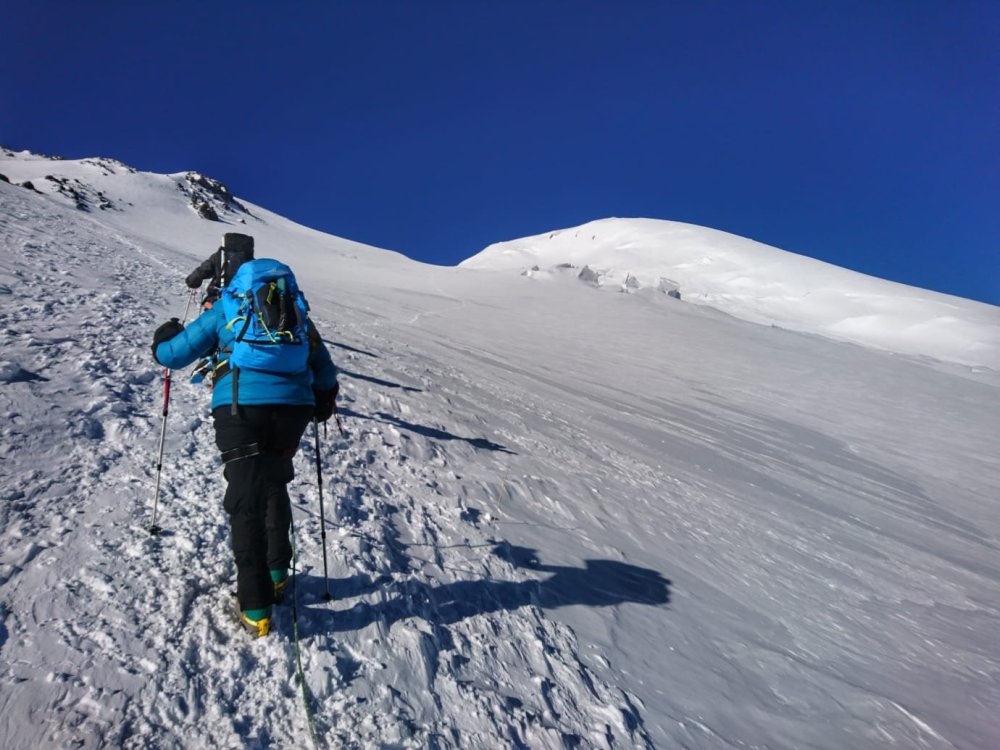 1. Skiing down would have been the preferred option for sure!! Andy perked up….I didn’t 😕…Maks has sussed us out and ‘gets us told’…he has told us he has enjoyed leading our group very much as we are all friends, he calls us ‘the friendship group’…his sense of humour is great, he is a great guy and someone I will miss alot! From our Assualt Camp (camp2) your straight in snow….the mountain is covered in it…stunning but very hard terrain. No huts, portocabins nothing after assault camp 2….this mountain doesn’t allow it….even Everest has less altitude climbs than this one 💪…summit climb alone is 1900m xxx