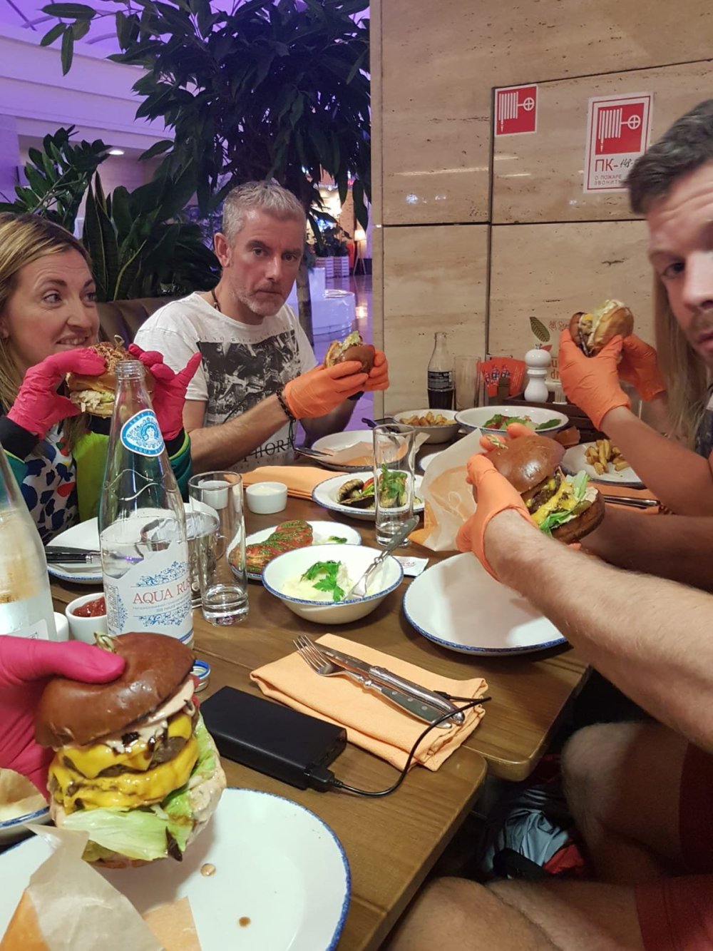 Tonight’s meal was strange…we ate in a restaurant with rubber gloves on!