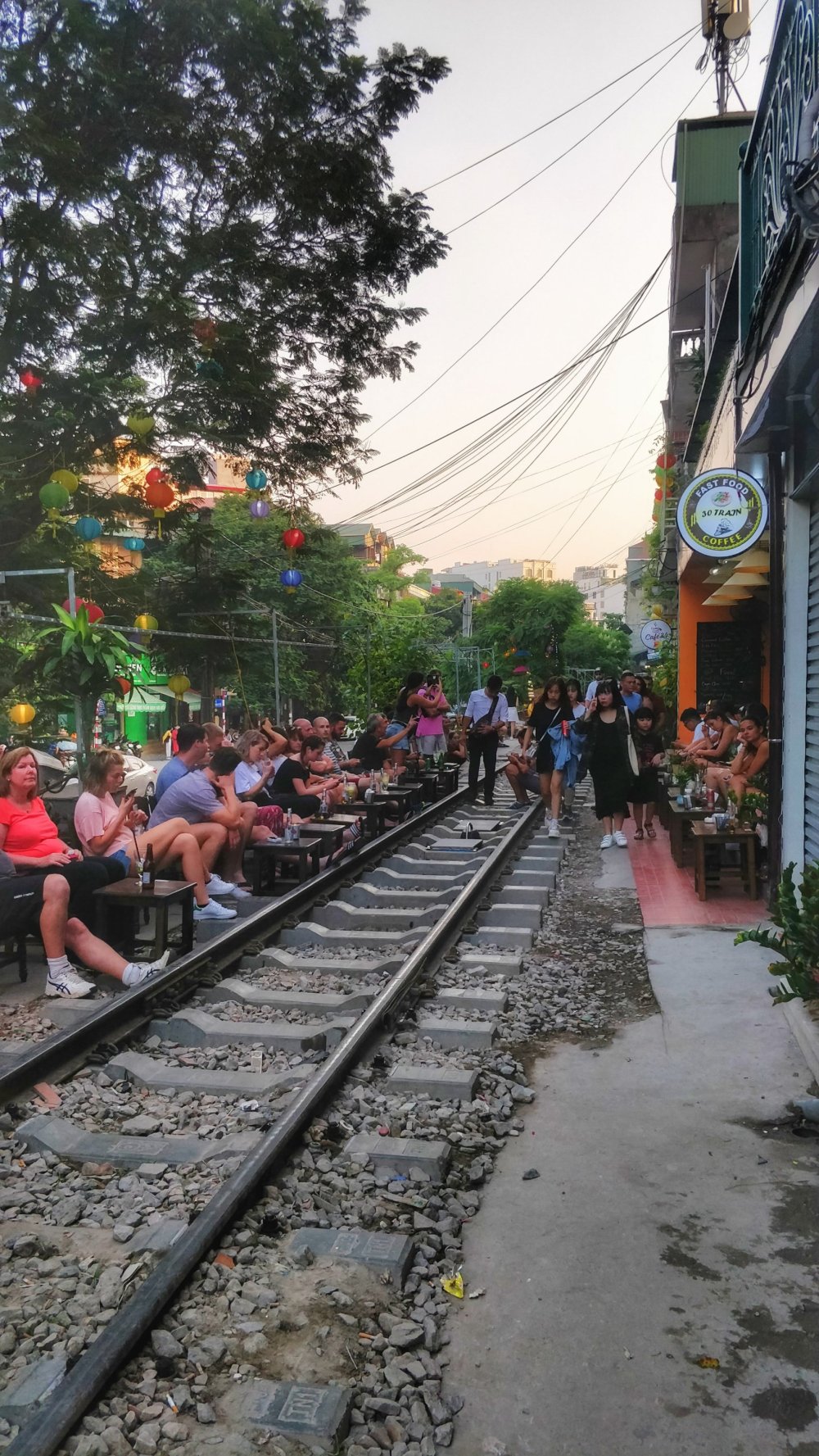 We had came up here earlier and couldn’t quite believe what we saw….a functioning railway line packed full of people walking on it, sitting on it, sitting beside it having a drink, it was crazy….so we bought a drink and joined in the madness.