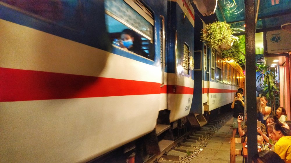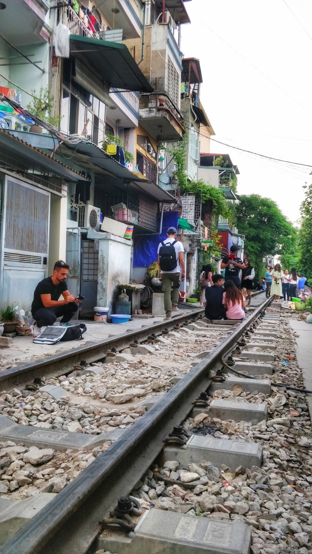 The train went right through the middle of this street where people still live, and others like us come for a drink on the railway line to catch this exact sight!
