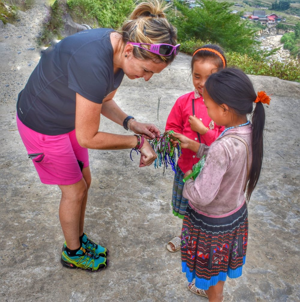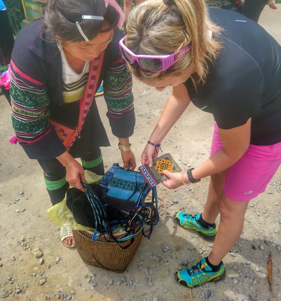 We say goodbye to the Mong women as we leave their territory but buy some homemade materials from them before leaving.