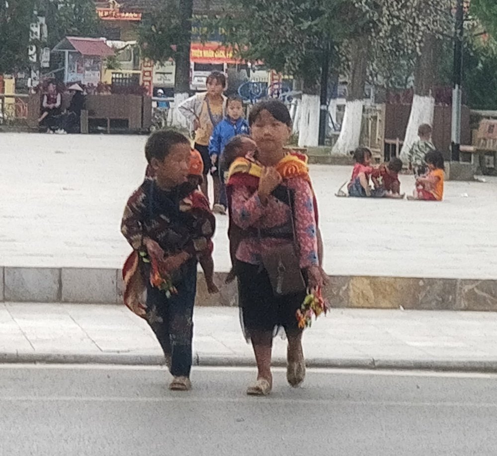 They try and sell you their hand made goods. Children as young as 4/5 have siblings tied to their backs. Some of these tiny children as young as 1 year old sit on the streets, dressed beautifully hoping for the tourist to offer some money.