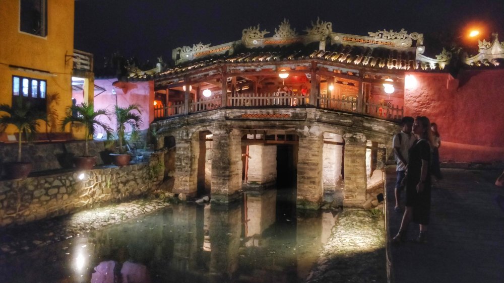 This can be seen in the many heritage buildings in the ancient town, including the wooden shop-houses, the French-colonial houses, Chinese temples and pagodas, and the famous Japanese-designed bridge.