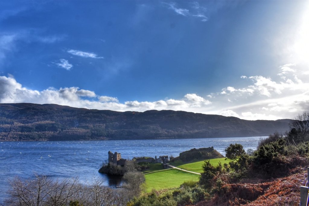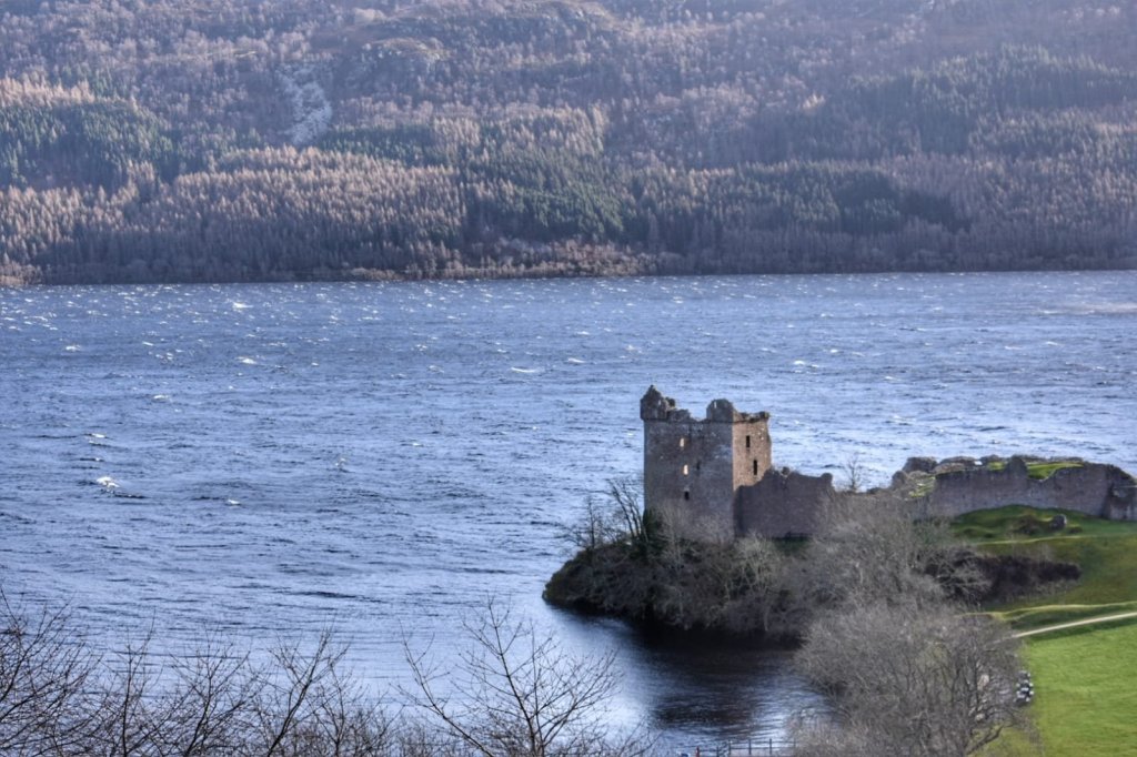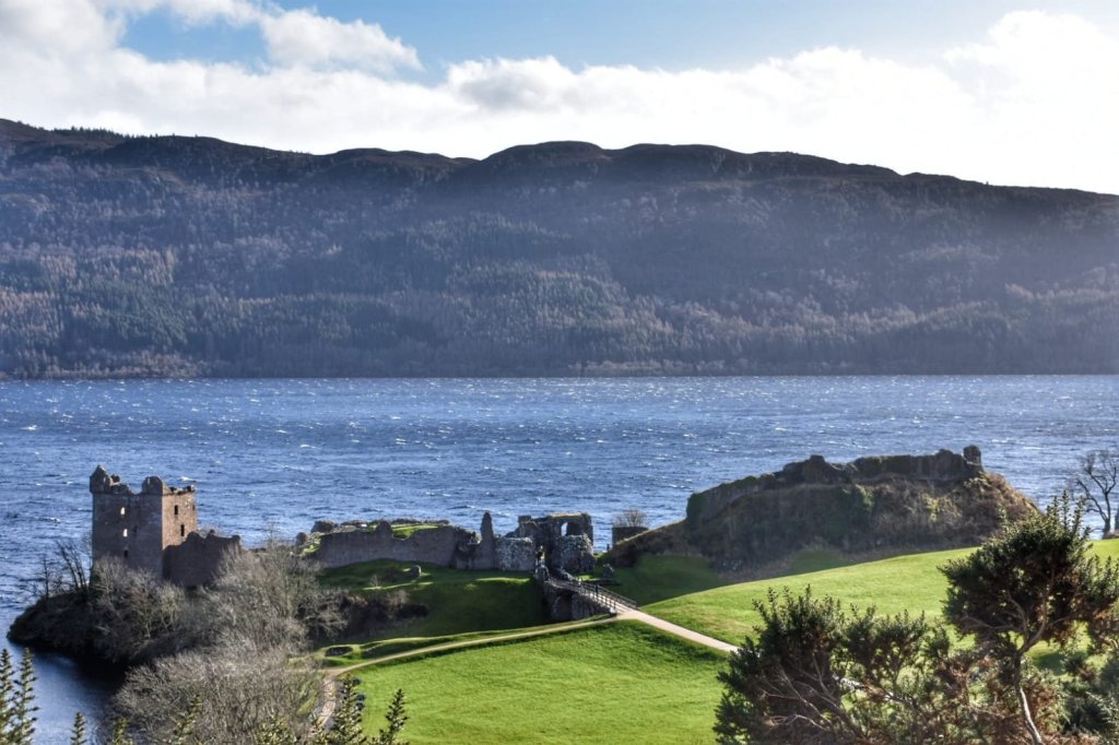 Urquhart Castle sits beside Loch Ness and the great hills of the Great Glen.