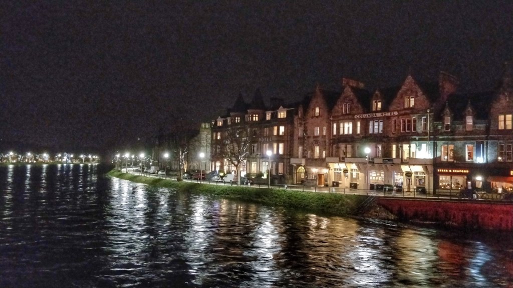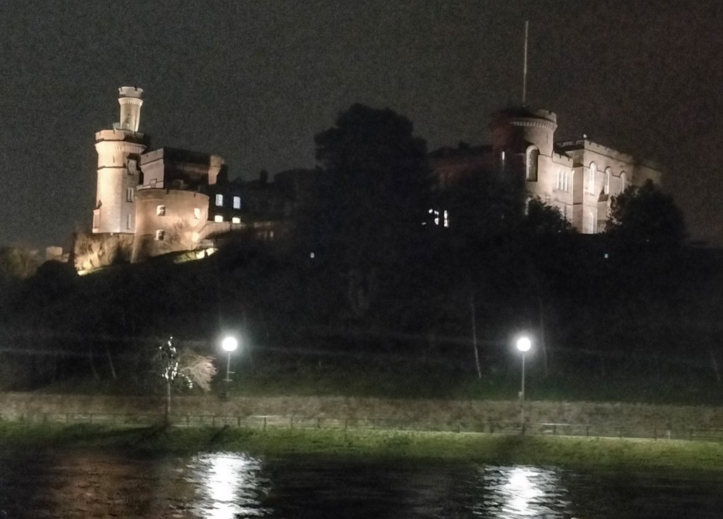 Tonight we wandered along the lit up river bank and watched the bursting fast flowing River Ness. The castle, perched on a hill was in full view…it’s a pretty spot.