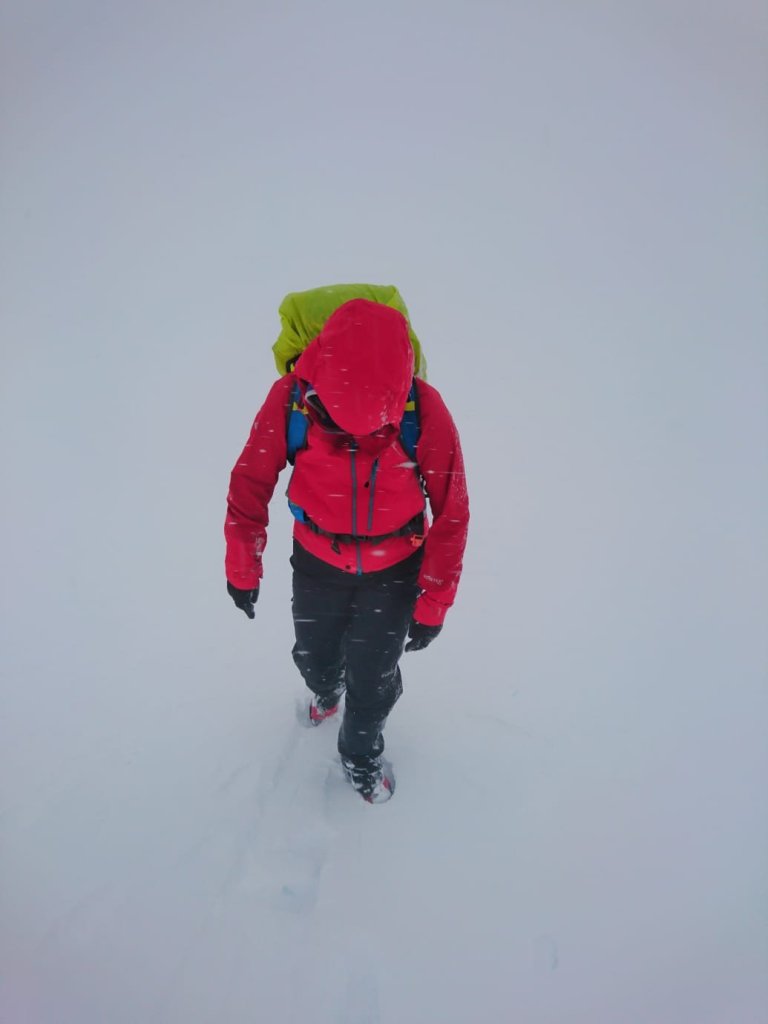 It wasn’t long into the climb before the winds picked up and we were walking in blizzard conditions. Snow was really deep so every step was an effort, pushing into the deep snow and then having to pull yourself back out.