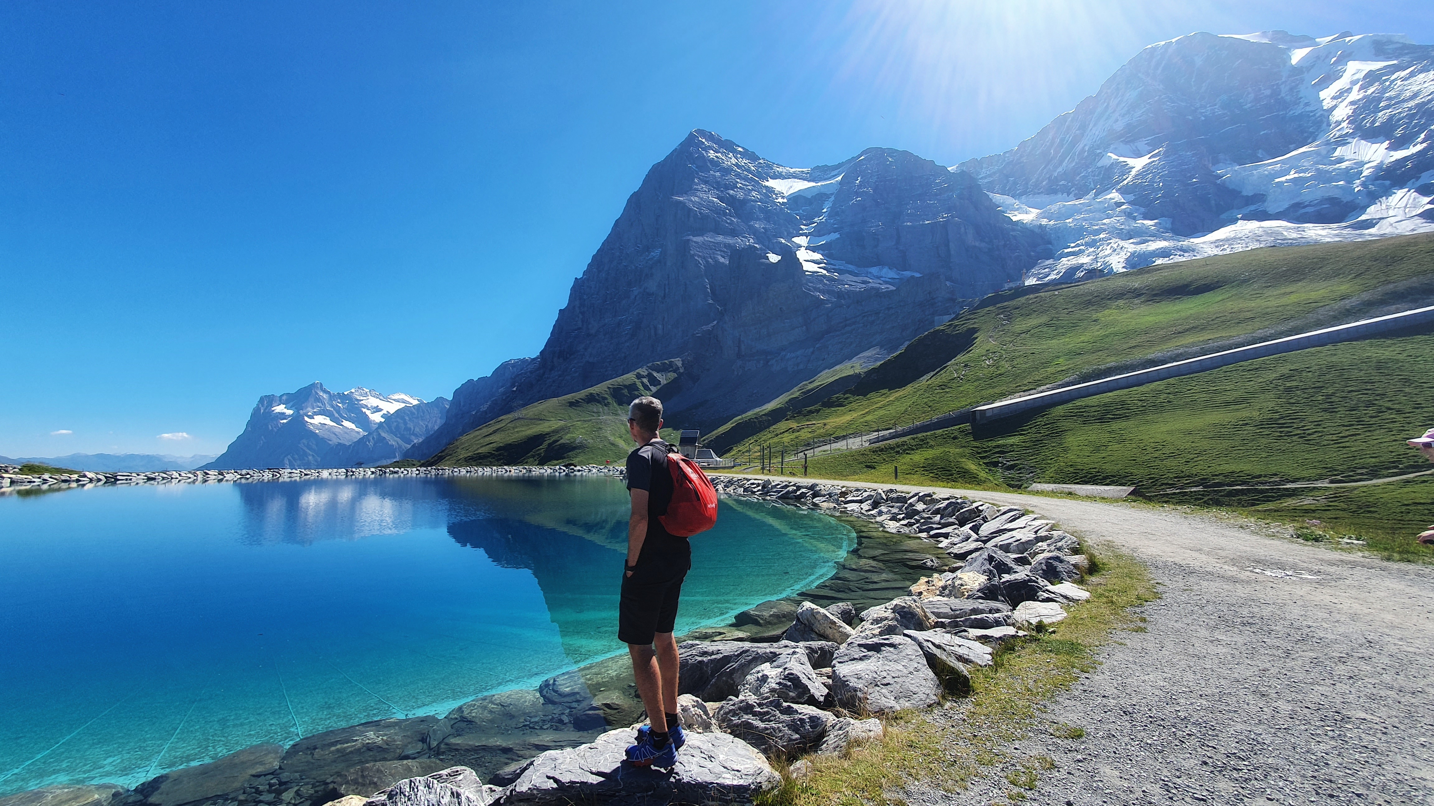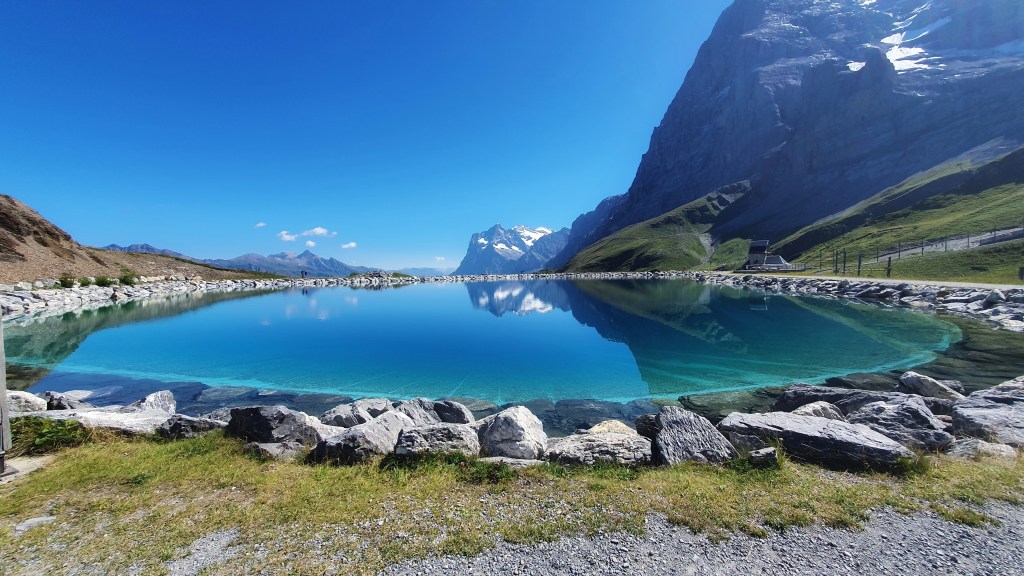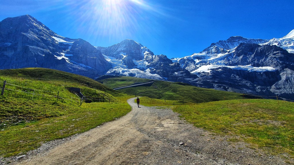 We ended up hiking past Kleine Scheidegg towards the foot of the towering North Face of the Eiger eventually hitting the perfect spot to rest with hardly a sole in sight. It had a stunning lake that looked so tempting with the most amazing views of the Jungfrau to right down the valley.