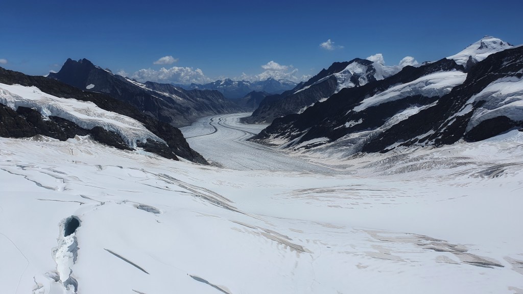 This Glacier is the heart of the Jungfrau-Aletsh protected area, a UNESCO World Heritage Site.