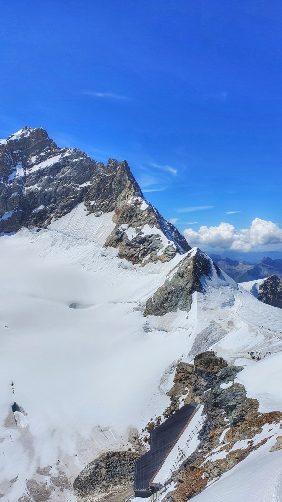 ….to the most surreal ‘train station’ you’ll ever see, it was basically at the face of the Eiger and the track dissappeared into the mountain. We caught the train here at Eigergletscher which took us to our final destination…the top of the Jungfrau (but not quite remember).