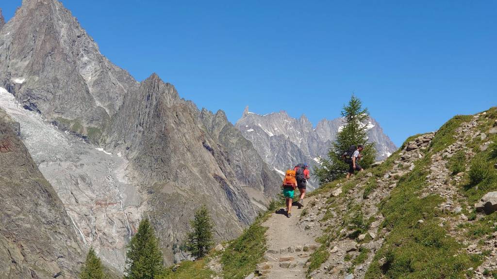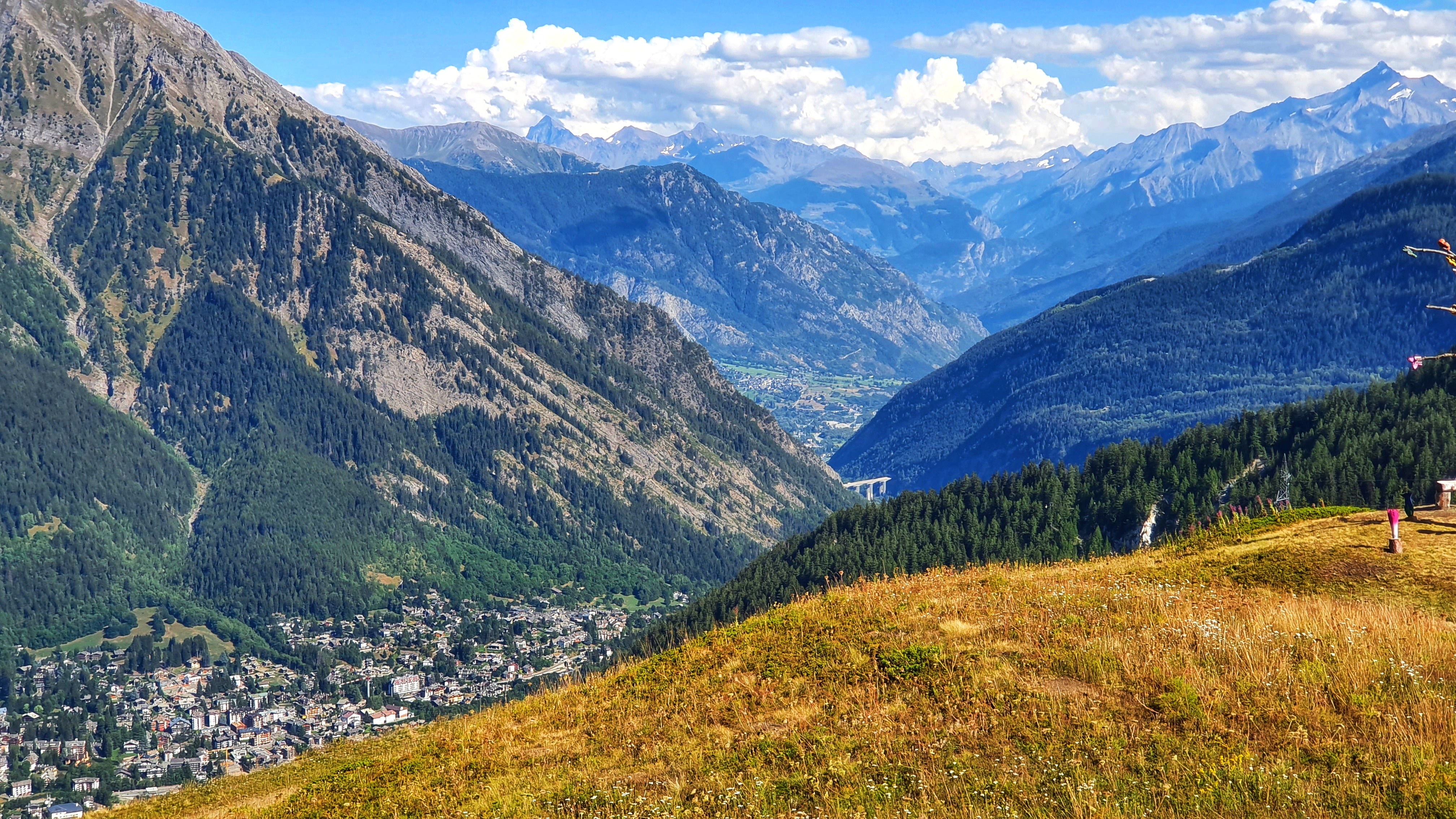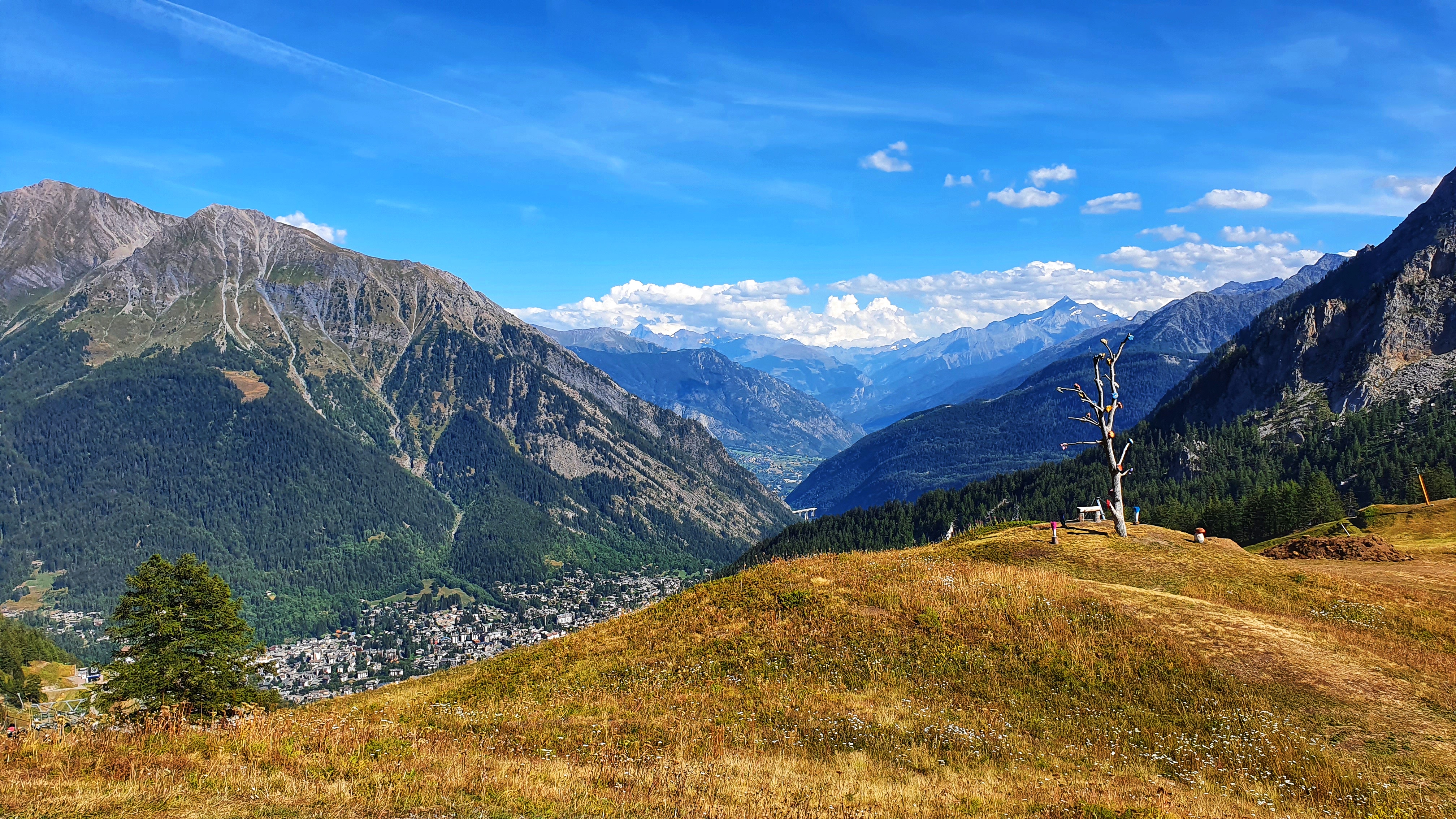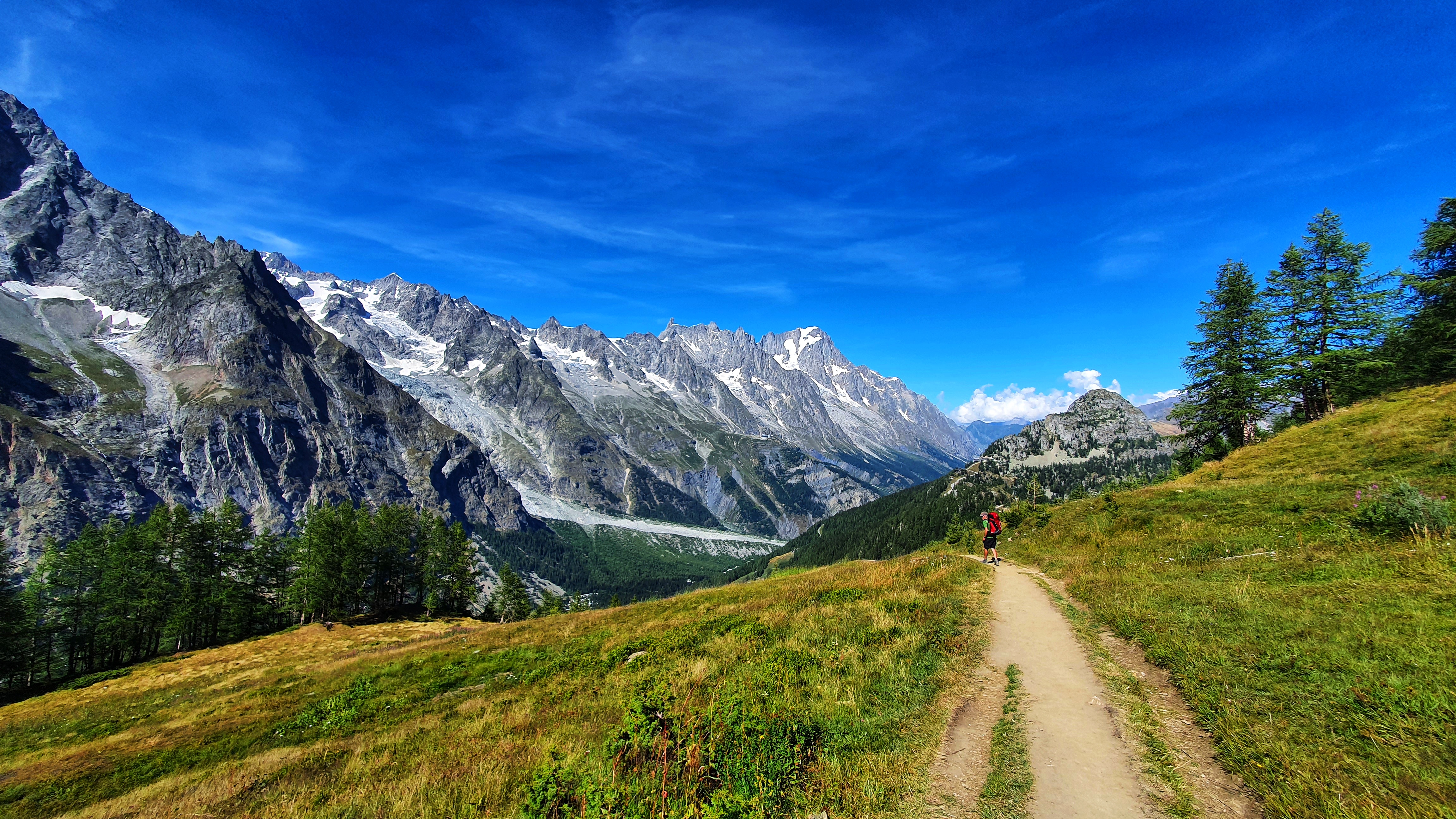 Once you reach Plan Checrouit, if your legs are a bit worn out, you can take a cable car down to Courmayeur. The cable car can save about 1,900 feet of elevation loss.