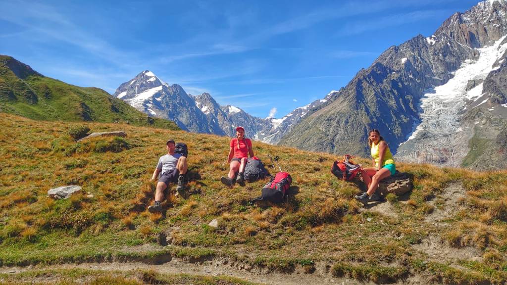 One of our group is struggling quite a bit with the steep upwards and downwards and weight of the bag. When she sees a cable car down to Courmayeur where we are staying for 2 nights as we are having a rest day here, she decides to take it the rest of the way down cutting her journey by 2 hours.