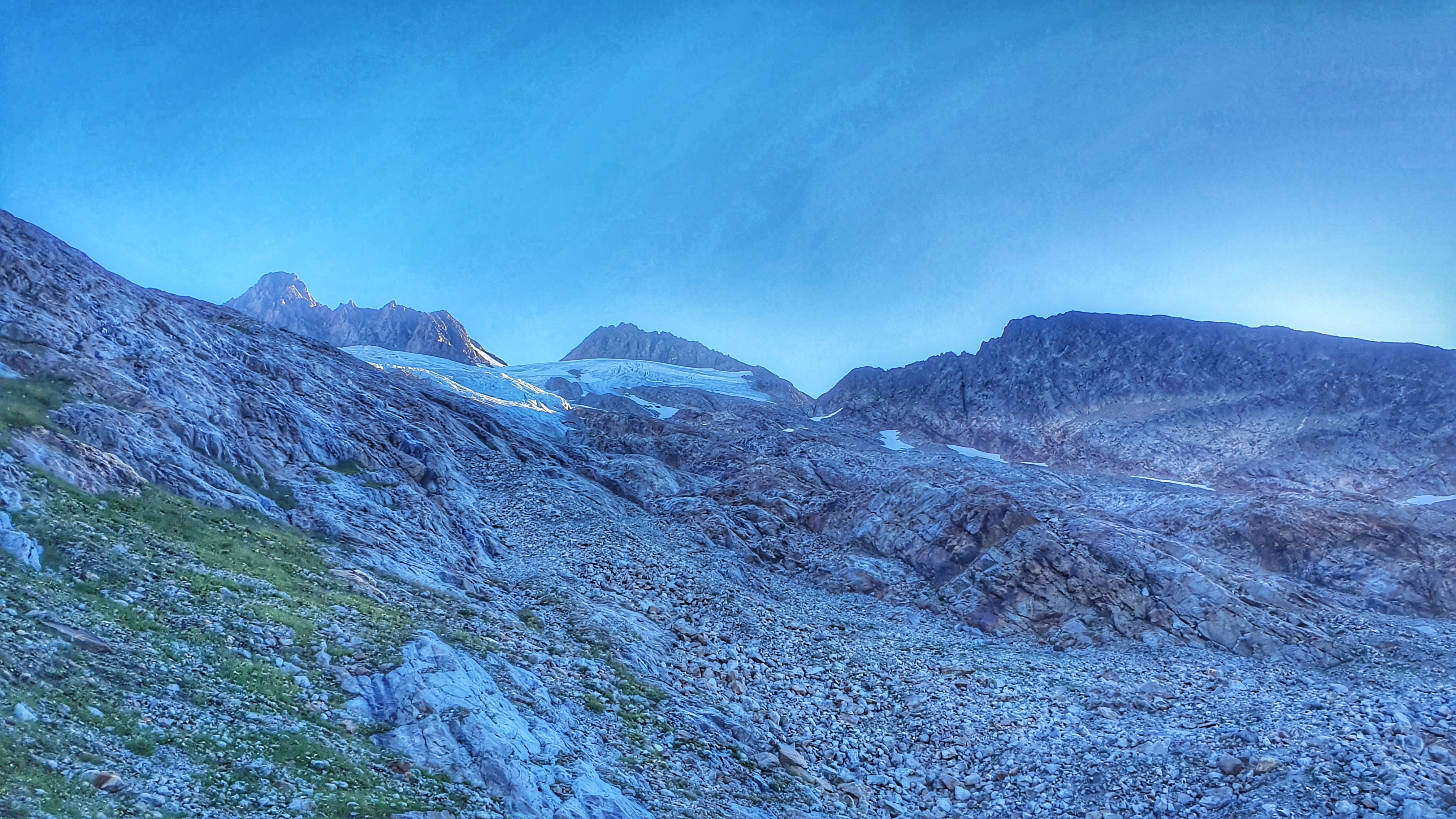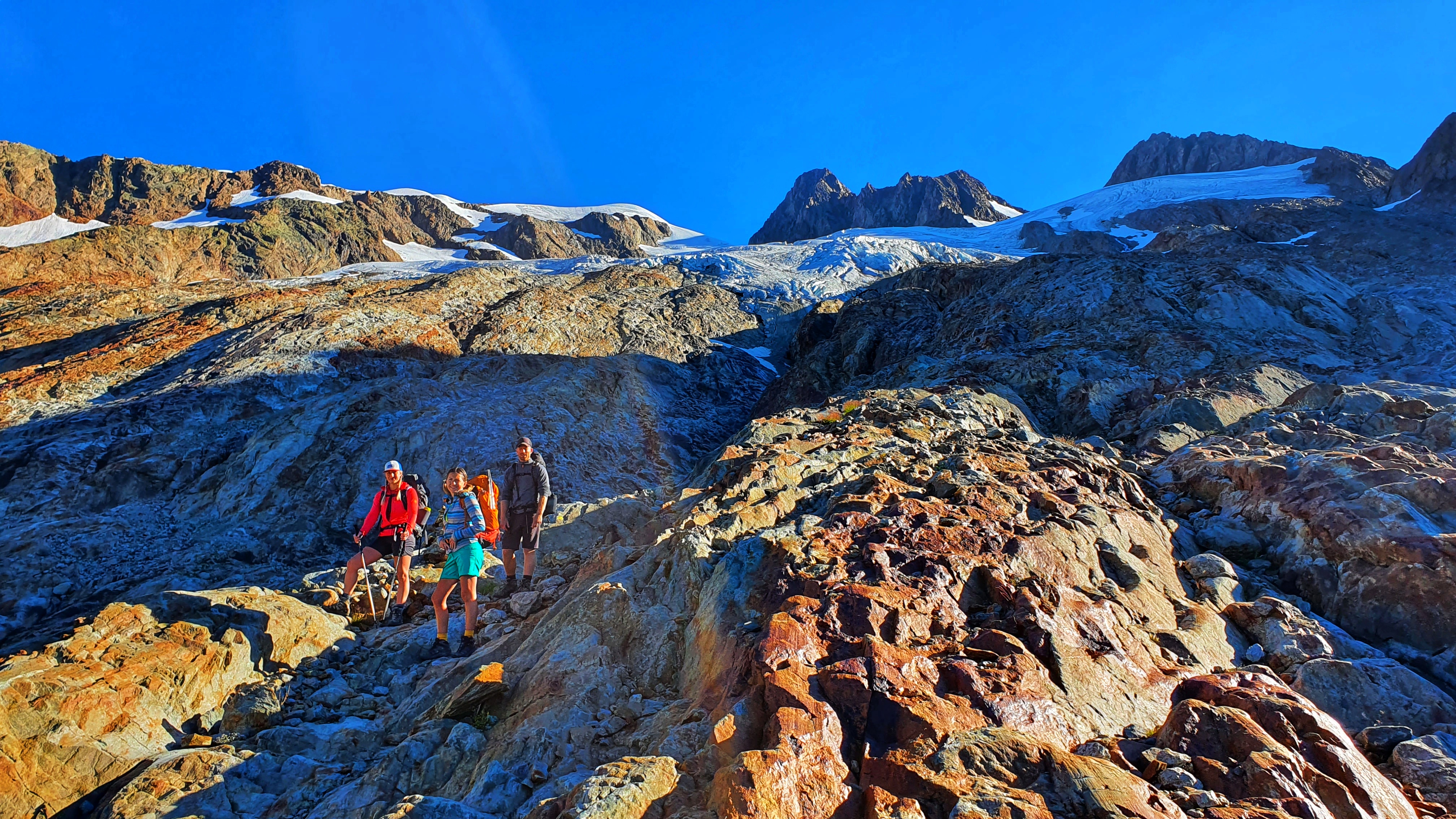 We started with stunning sunrise views from the incredible Refuge Robert Blanc, 2,750m up the mountainside. The effort of getting there the evening before was forgotten in appreciation of this special place.