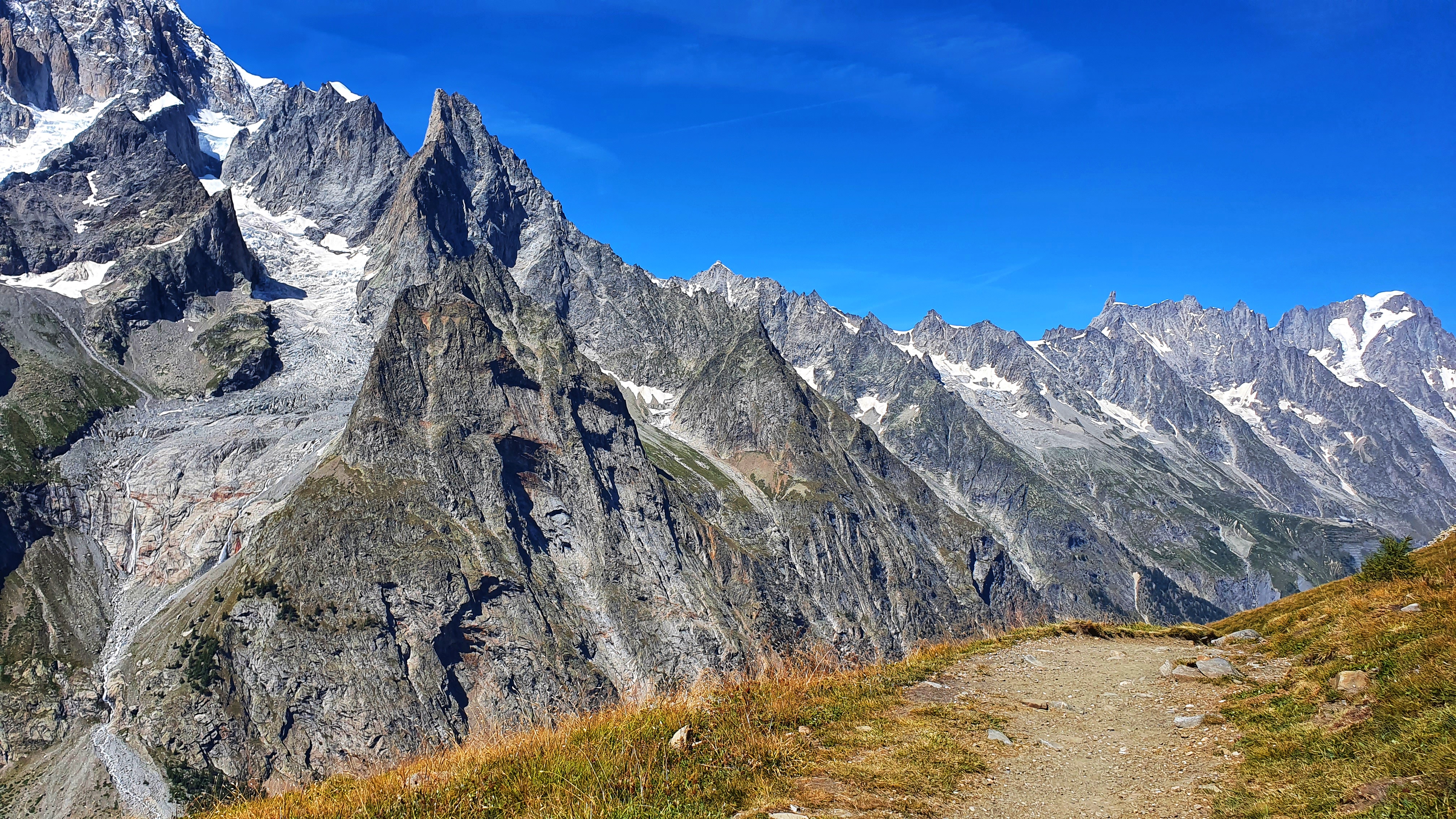 We make our way downwards traversing the mountain which has some really nice views of Mont Blanc and the surrounding peaks from the opposite side….there is glacier after glacier, it’s an amazing spectacle of Mother Nature showing off.