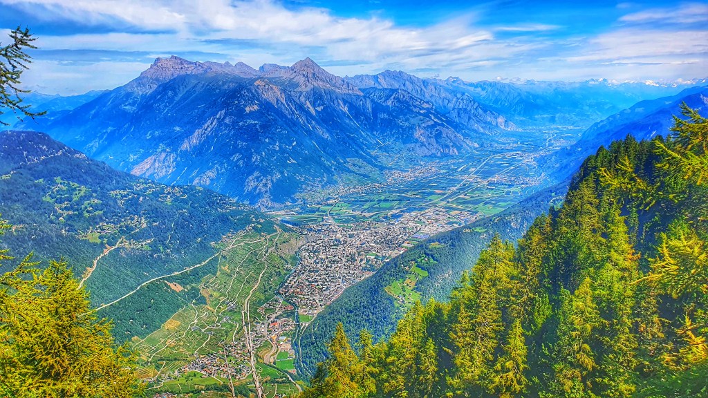 It is an impressive route with views of the Town of Martigny which seems to be miles below, we passed through this town by train on our way to Switzerland at the beginning stages of our trip.