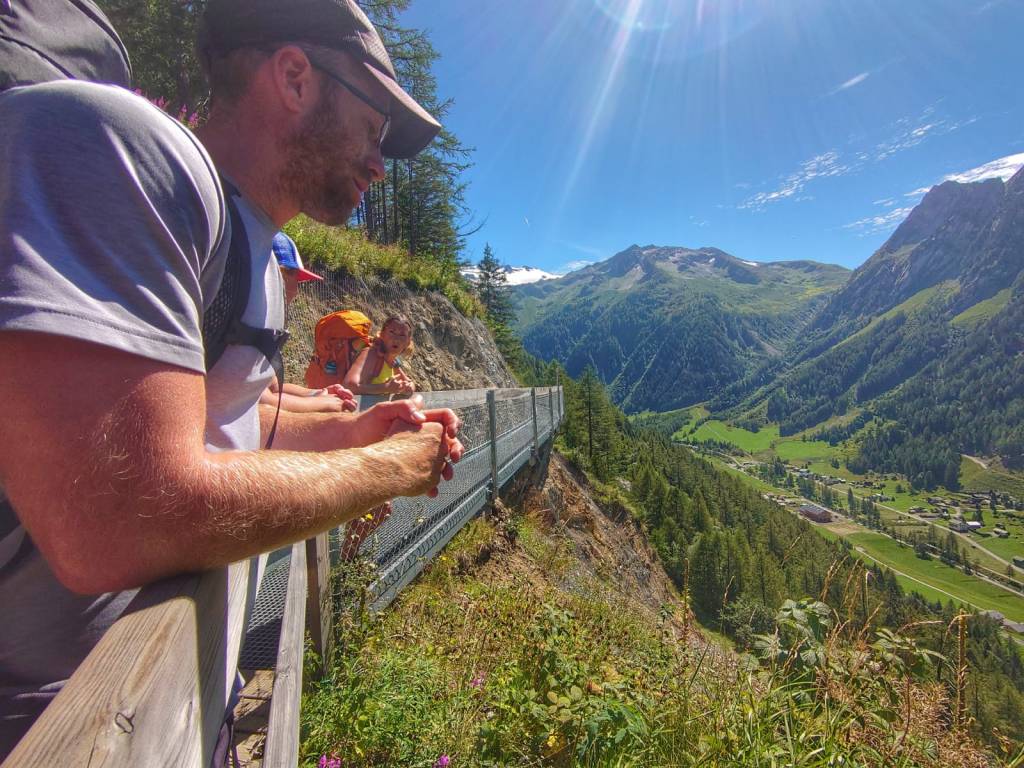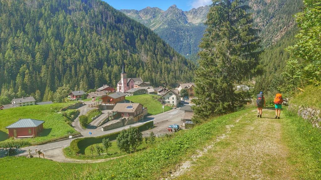 We decended through forest, which included crossing a metal bridge hanging on the side of a cliff before arriving in the picturesque hamlet of Trient.