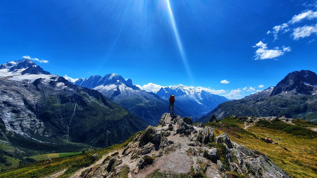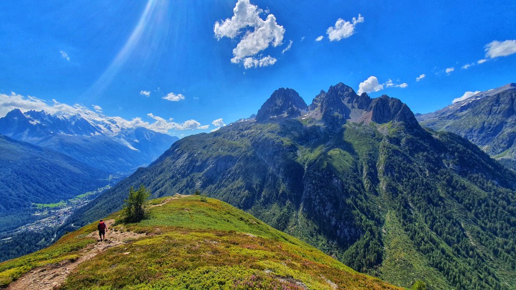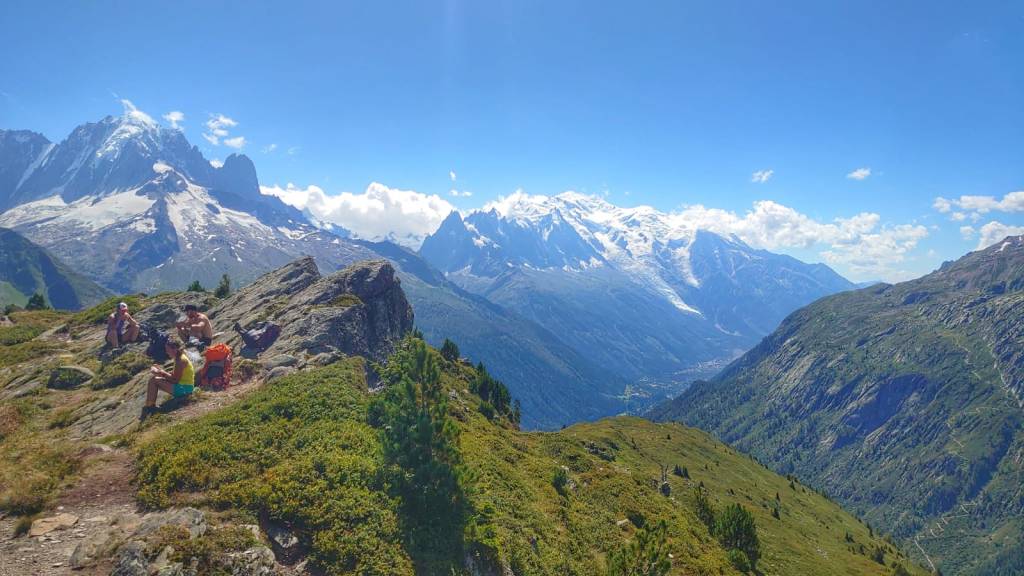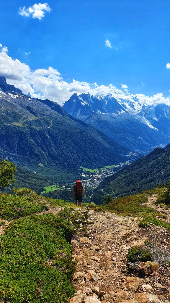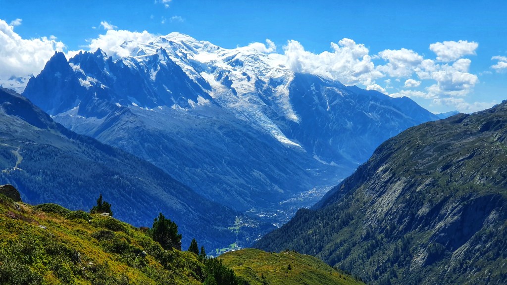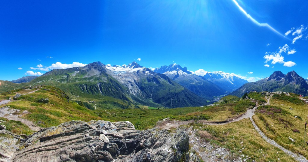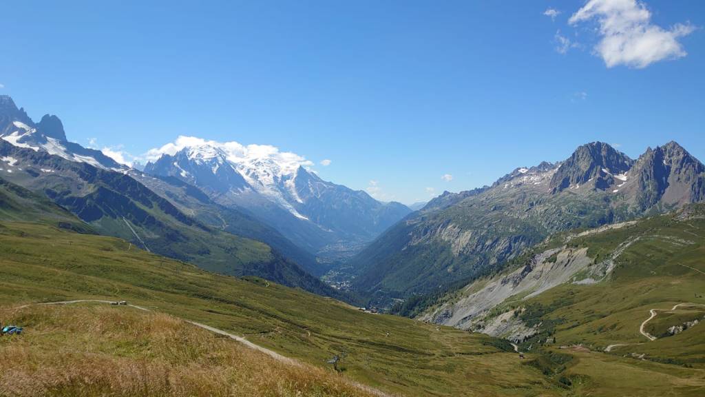 The whole Chamonix Valley lay spread out before us with Mont Blanc dominating the skyline on the south side of the valley.
