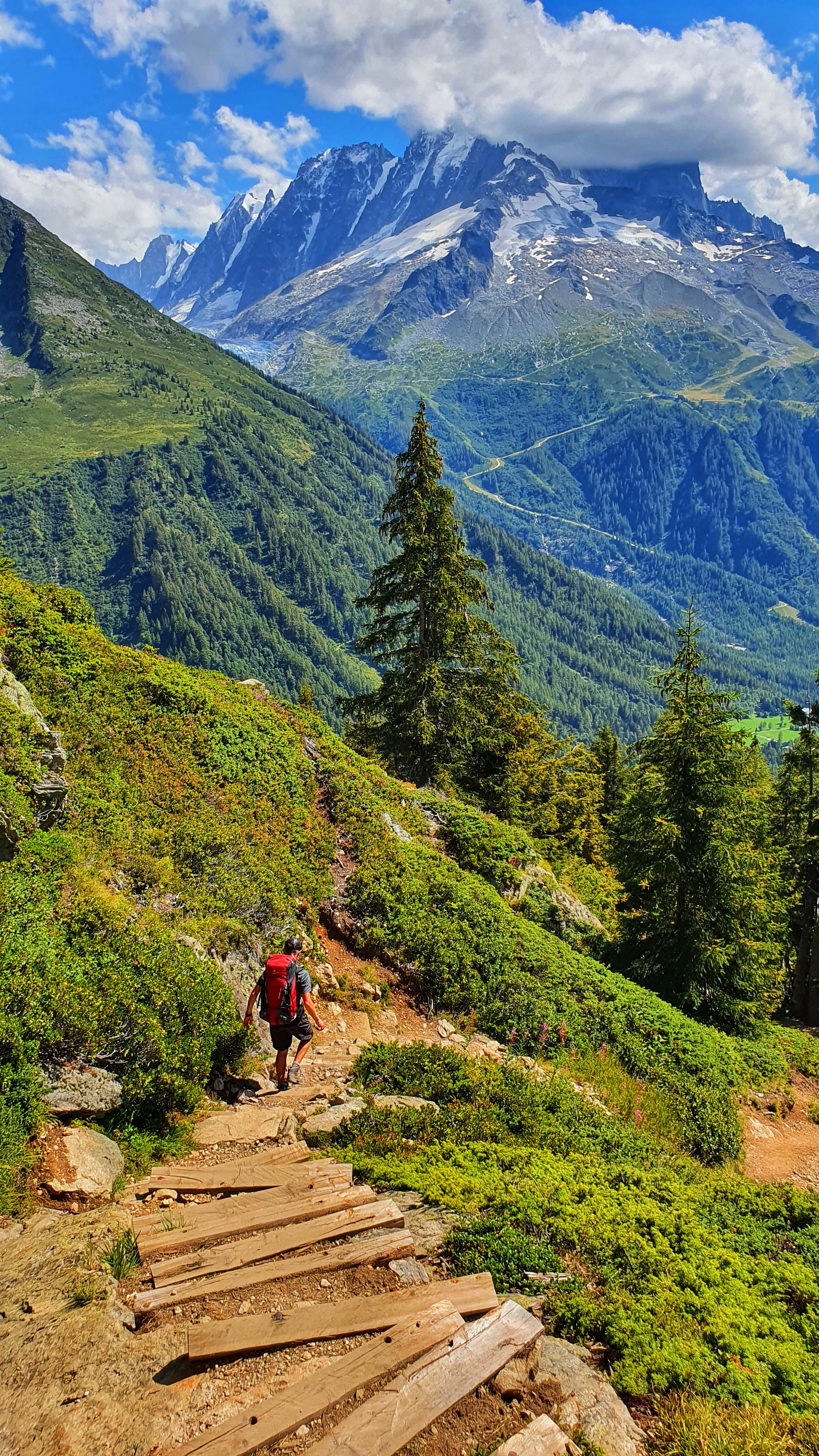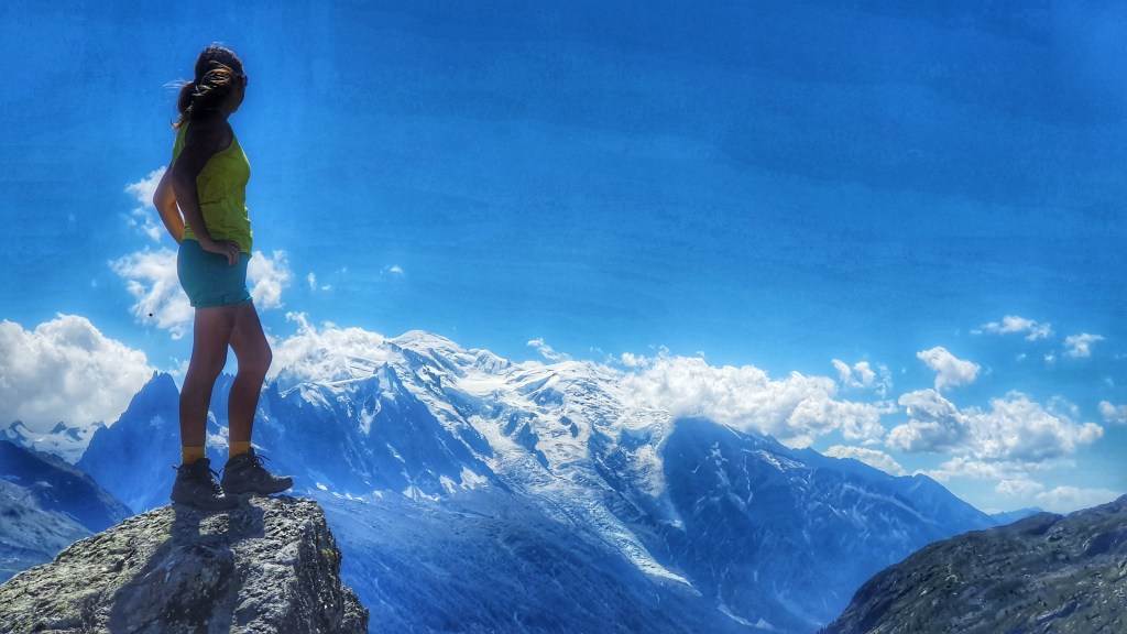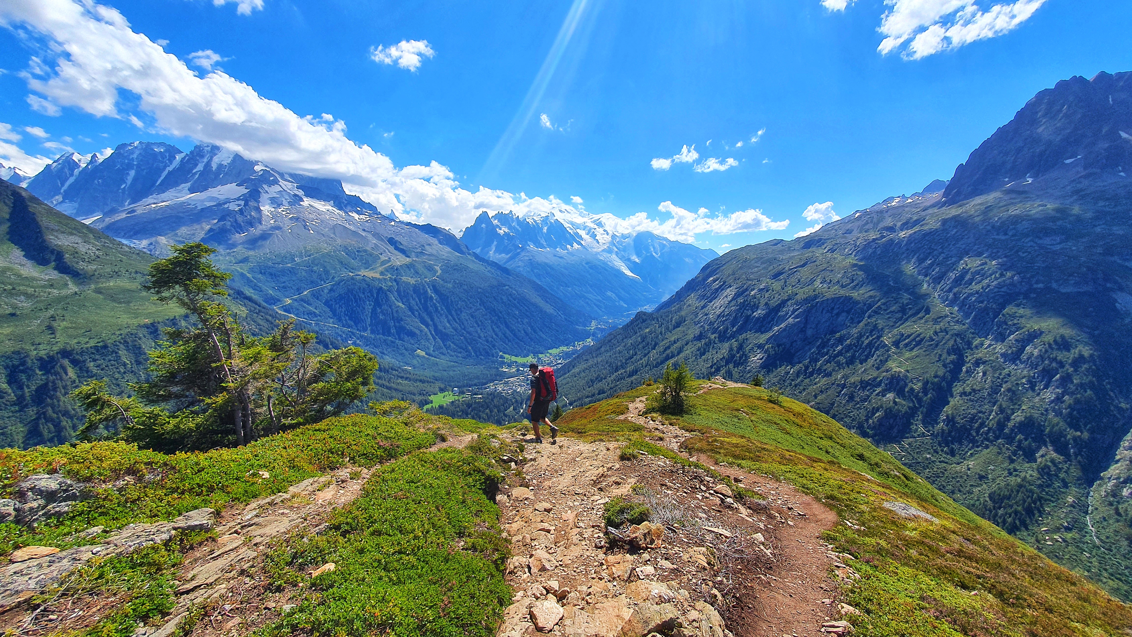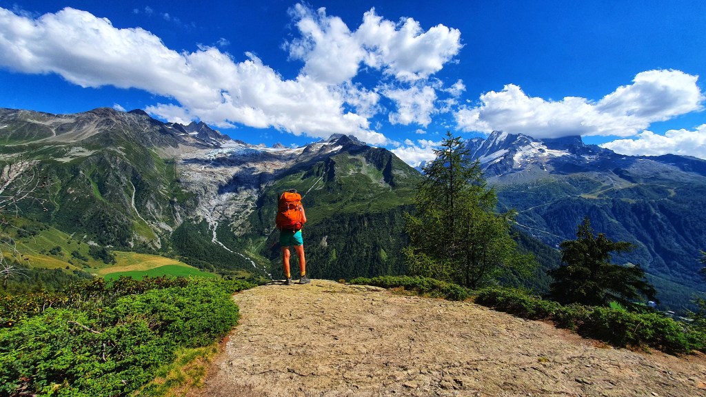 The whole Chamonix Valley lay spread out before us with Mont Blanc dominating the skyline on the south side of the valley.