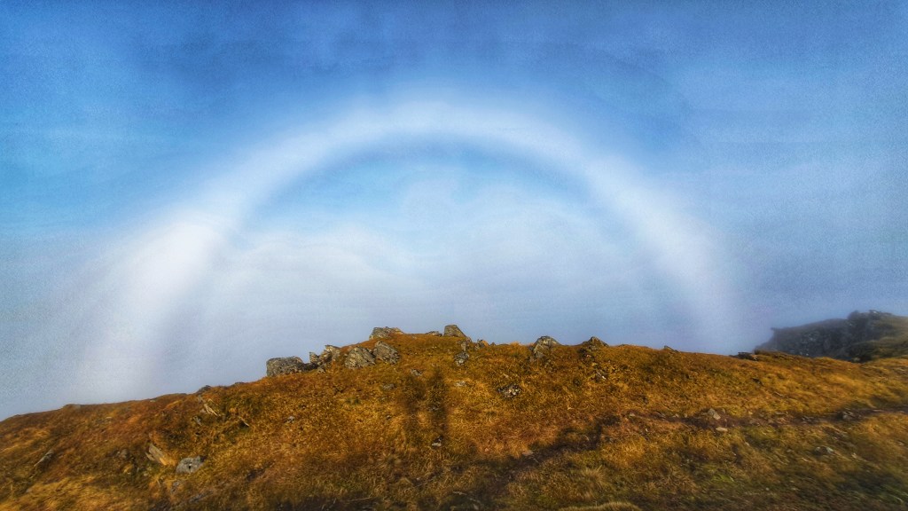 Well I got to witness my first real fog bow right here, and it was very special and very beautiful…and with all of this going on it meant that even although we were on a schedule as this was a long days hike and it gets dark earlier we stayed here for some time taking it all in whilst trying to capture on camera what our eyes were witnessing but it never ever comes out the way you see it with the naked eye…but we try!