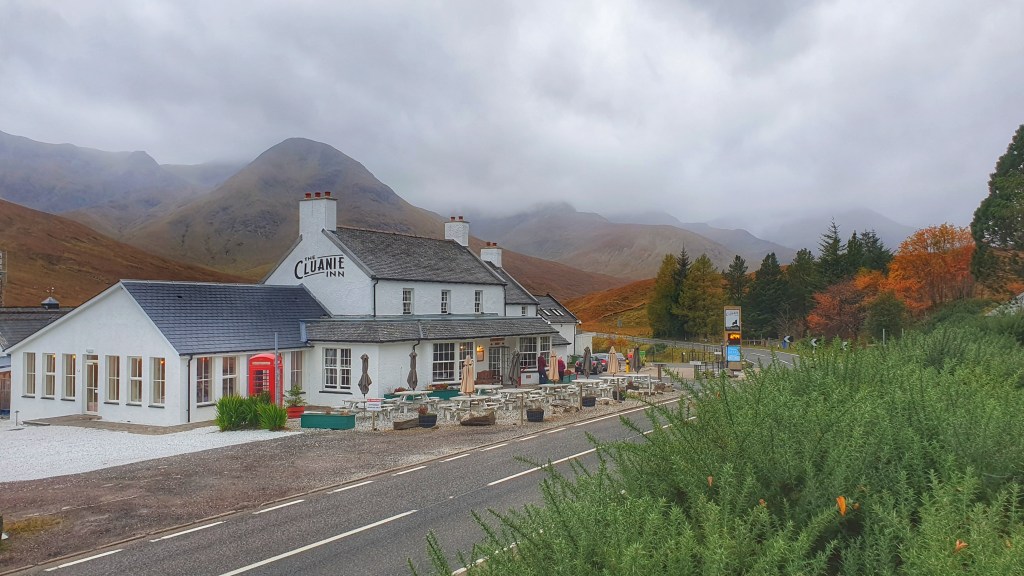 We were staying in The Cluanie Inn which has been serving the traveller for over 100 years. Once known as “Rhiabuie”, The Cluanie Inn started in 1787 as an isolated staging post situated where drivers of old turned south for Tomdoun via Lochoyne built on instructions of MacDonnell of Glengarry.
