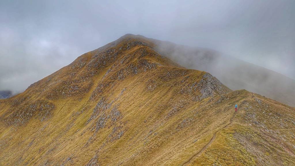 We followed a relatively easy down and then another short climb until we reached Munro 3, Aonach Meadhoin.