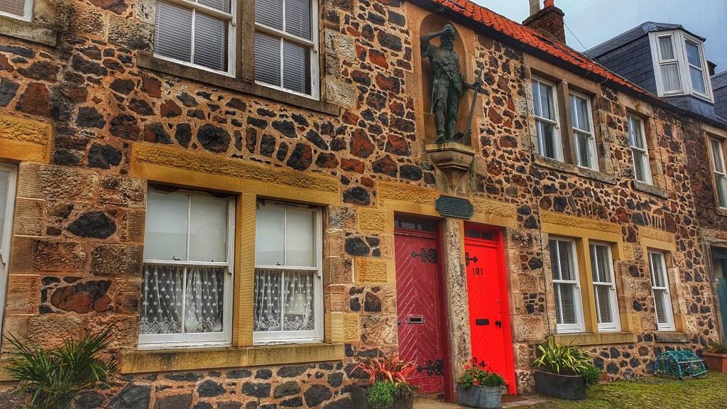 Lower Largo is worth the exploring. We found ourselves in the midst of 20th Century housing and the historic core of the village before reaching a remarkably attractive village centre which backs onto the sea with a very unusual rivermouth harbour.