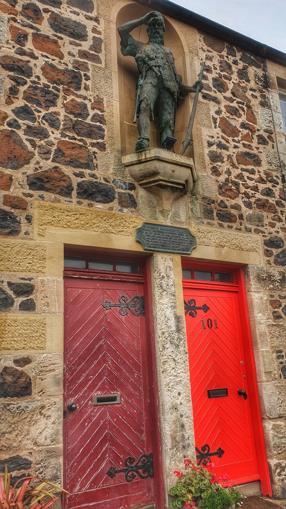 Selkirk’s statue stands on the site of the cottage in which he was born.