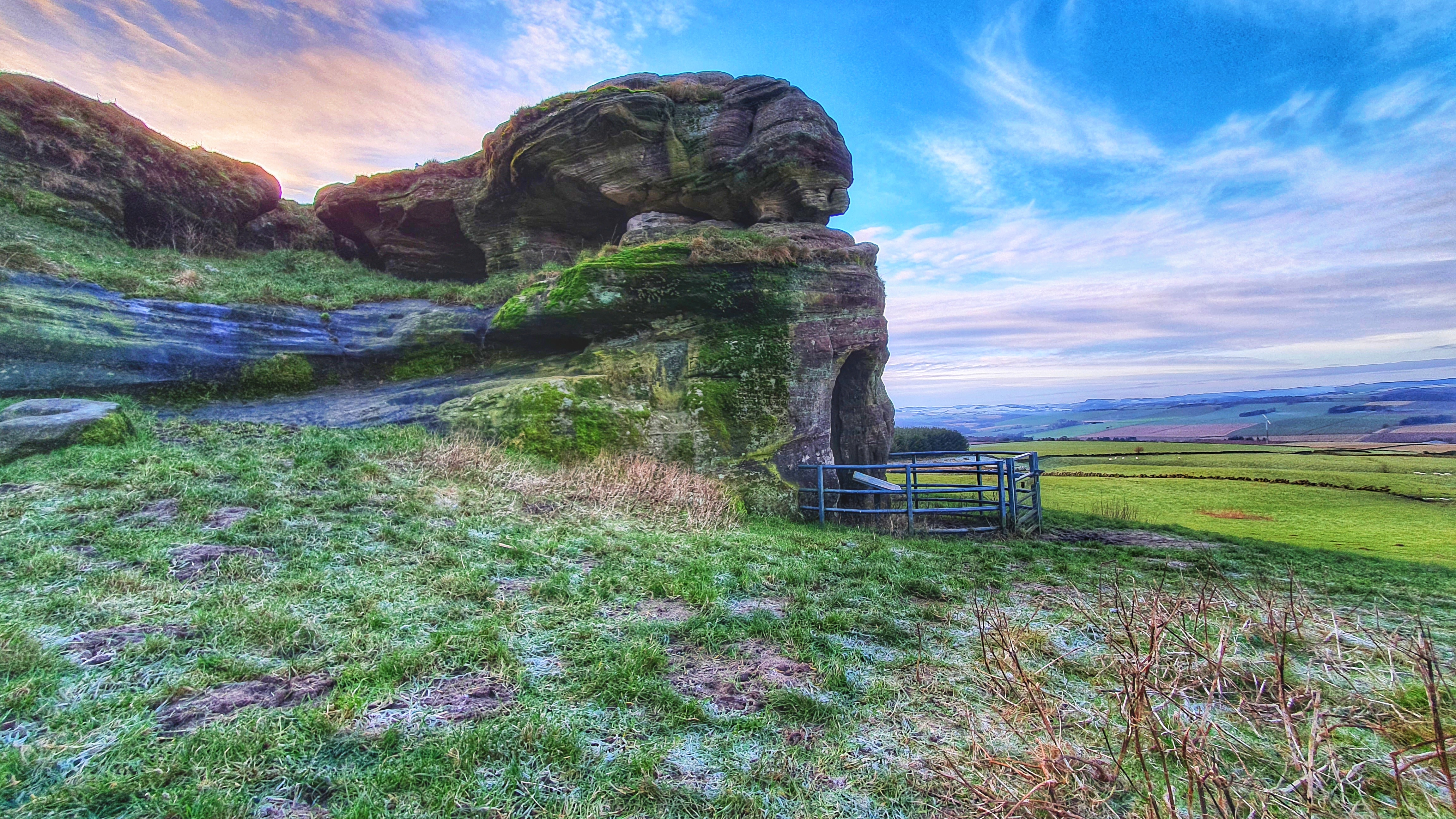 It’s tale is a sad and romantic one. A local girl loved the son of a rival family. These rocks were their meeting place but one evening whilst she waited she saw him being ambushed as he drew near. Her father’s men sprang from hiding and slew him. She refused to return to the family home and lived a hermit life in the cave. She became known locally as a saint and people came to her with their sorrows. It is said she is buried under the “Stane” and that if you are pure in heart any wish you make in the cave will be granted within the year – I visited the cave – let’s hope my wish is granted!!!