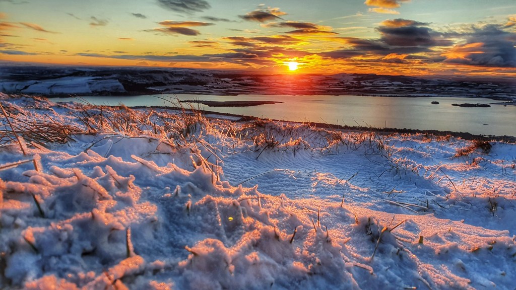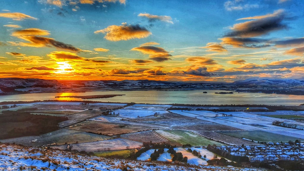 So January and February has saw us continually exploring Fife’s many wee local hills, rewarded with many big views. We have been blessed with some amazing winter suns and very low temperatures which has resulted in some spectacular sunsets….and I love a good old sunset…I am forever that girl that gets excited when the sky turns such beautiful colours!