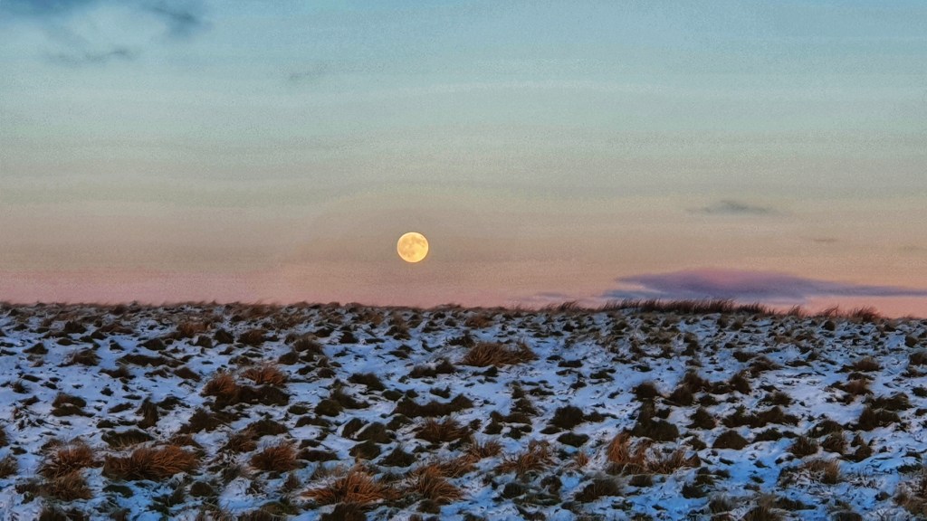 To our right the moon was rising up through a pink sky…it was tranquil and looked like a painting.