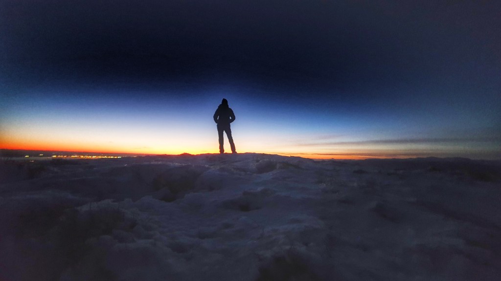As we almost approached the summit we got the most amazing 360° view. To our left the sky was on fire showcasing some of the most amazing colours as the sun was disappearing.
