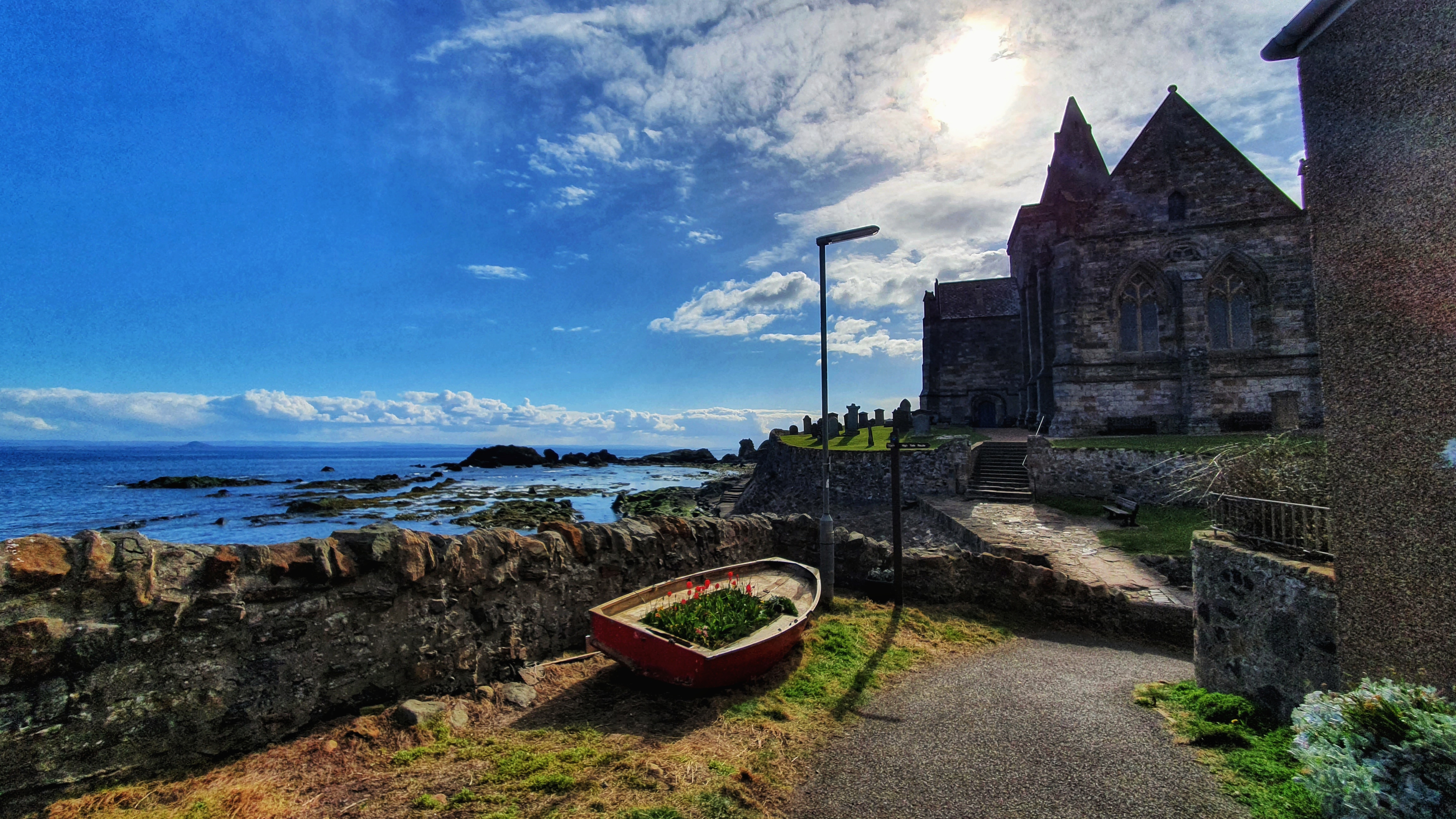 Next day we parked the car at the same spot from the previous night in Dalgety Bay and off we went again. The coastline here was beautiful indeed, we passed by St Bridget’s Kirk, a ruined medieval church, dating back at least as far as 1178 on the outskirts of Dalgelty Bay.