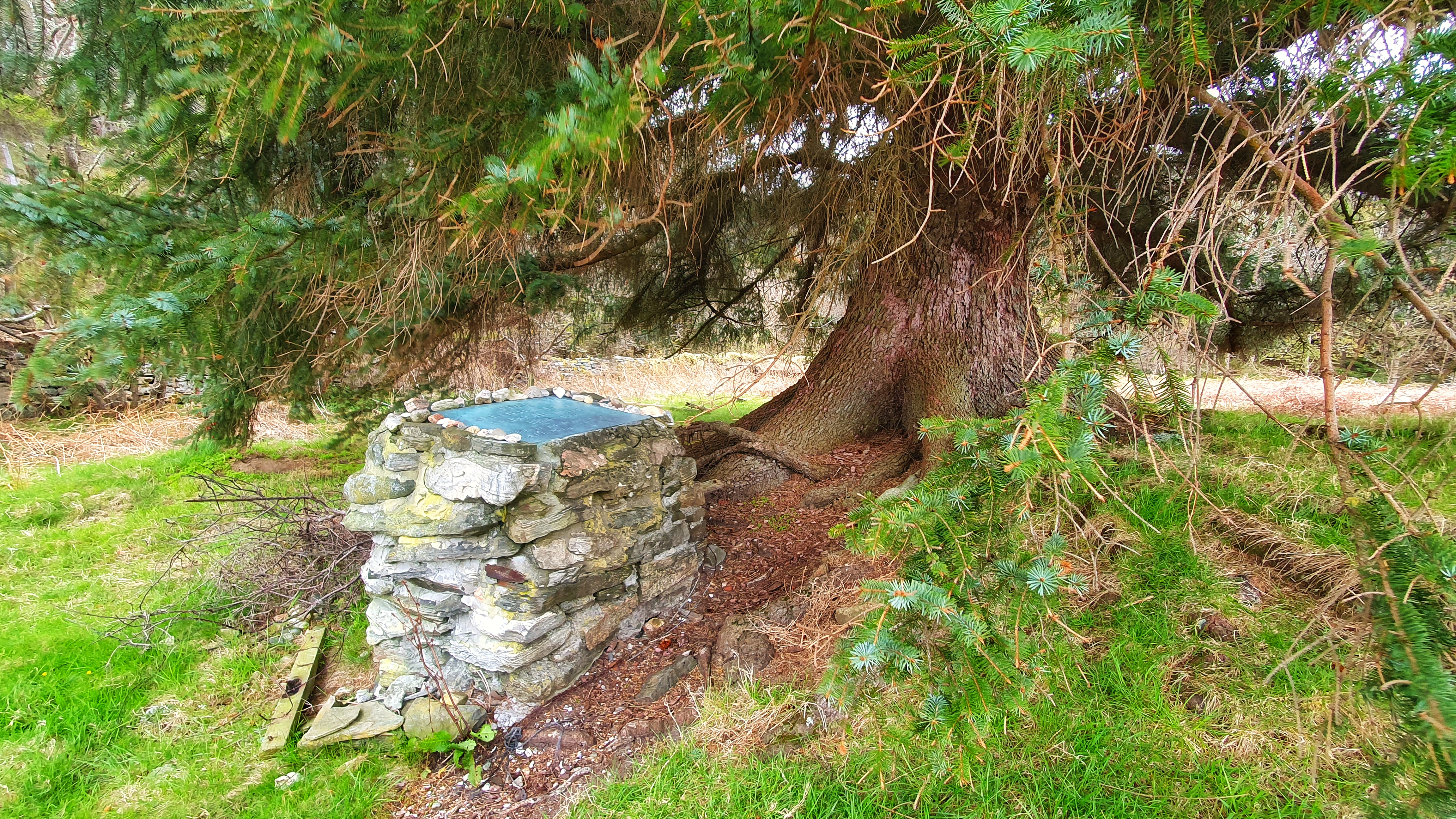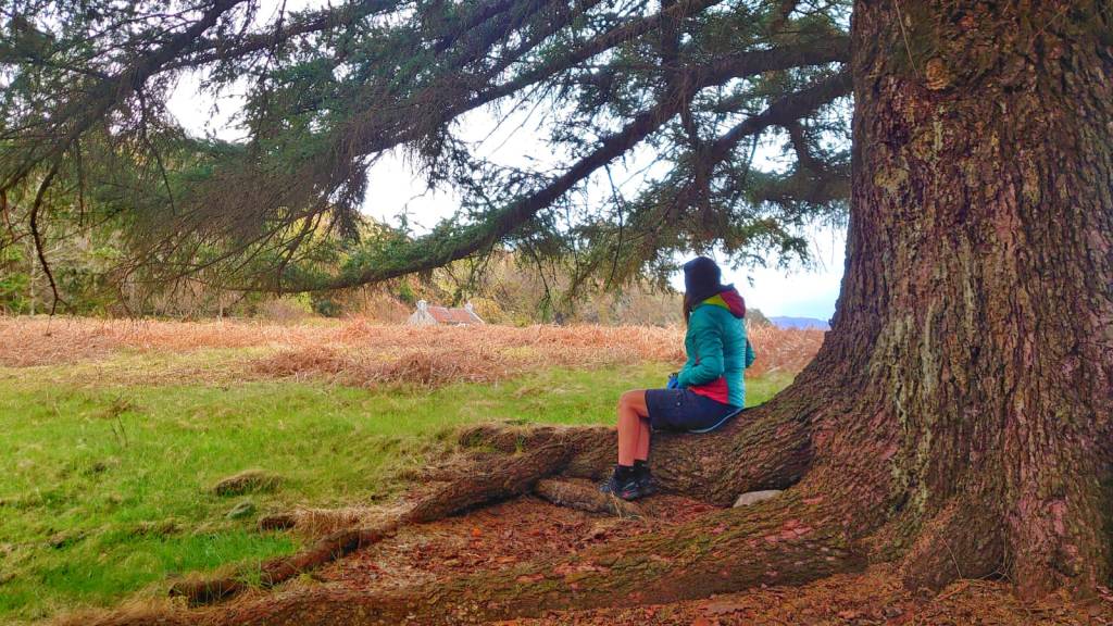 A few yards away under a very beautiful large tree towards a burn was a memorial to Edal, the otter that perished in the fire.
