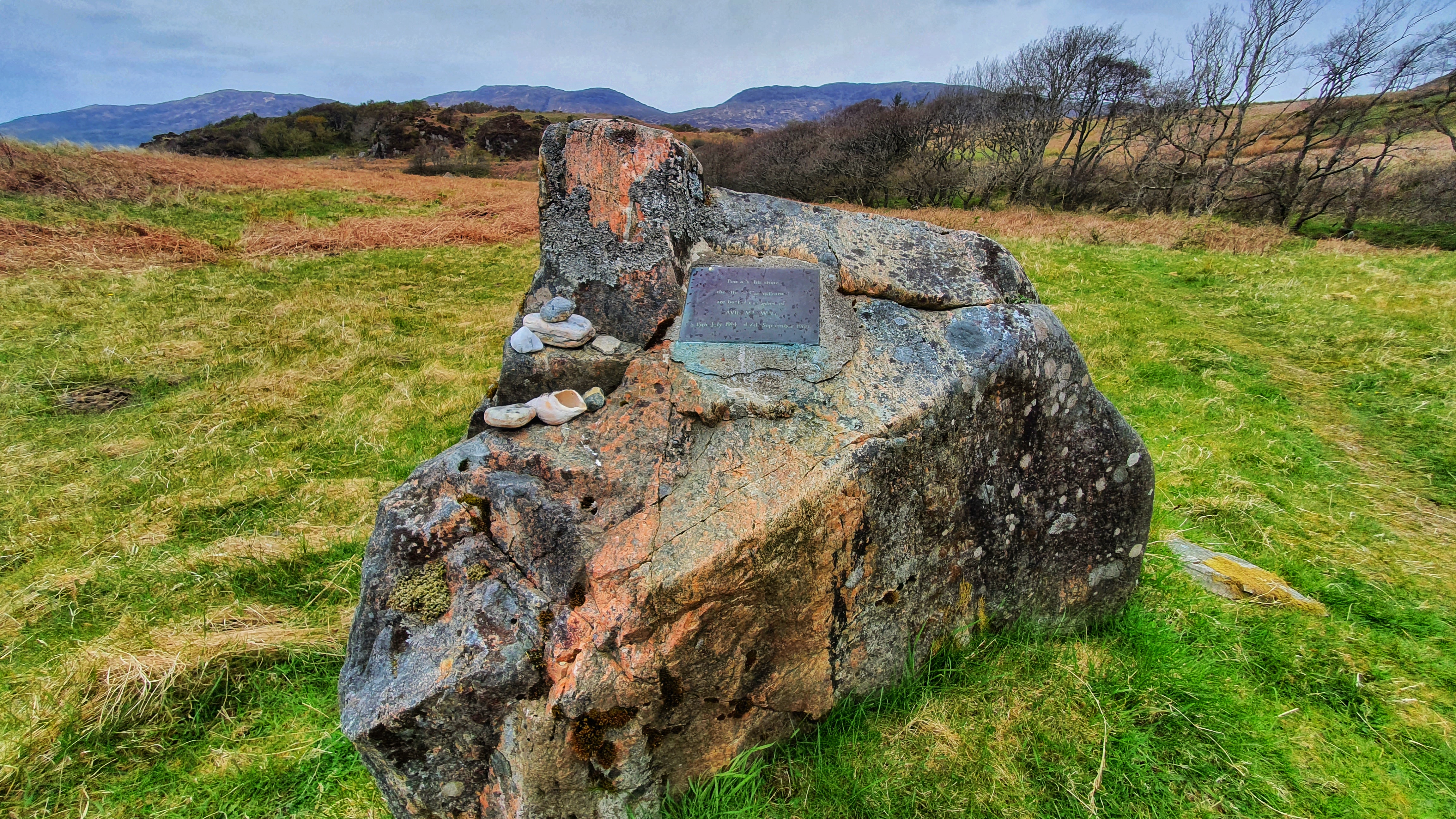 A memorial stone was placed just over from the cottage which marked where Gavin Maxwell’s ashes are buried, this also marks the spot where his writing desk was placed inside his own cottage, before it was burned down in 1967.