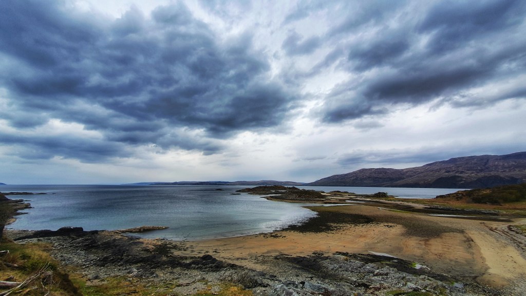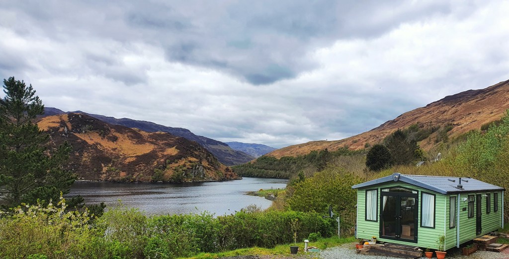 We thought long and hard about where we could go for a simple, back to nature, quiet and peaceful, secluded spot….and we came up with Kintail or more specifically a little Hamlet called Allt na Sugh, near Kyle of Lochalsh, across the loch from Dornie.