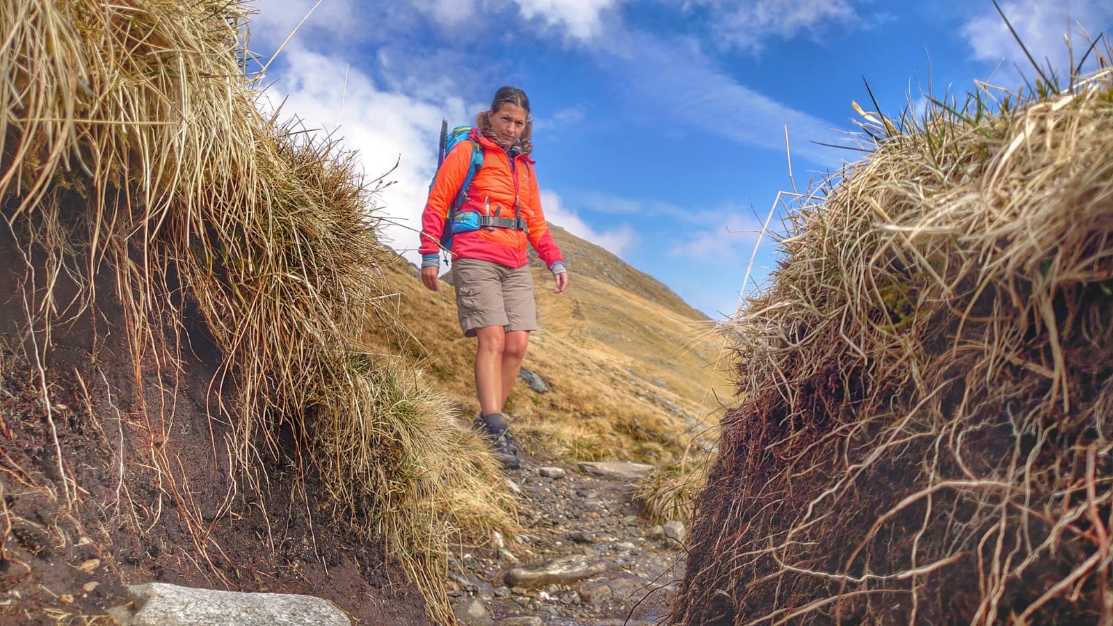 We steeply climbed off from Munro No. 4 before contouring round the side of another mountain and we found a spot to stop for lunch.