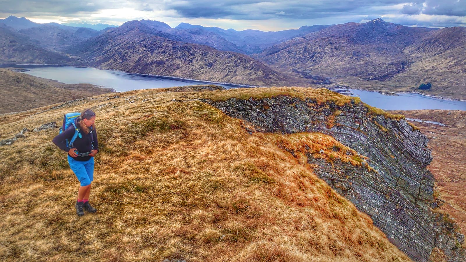 We could see all way across to the South Glen Shiel Ridge that we had undertaken the day before and it looked amazing. We also could see across to the Nevis Range and from here it looked like a storm was brewing and possibly heading our way so it was time to exit and descend quickly.
