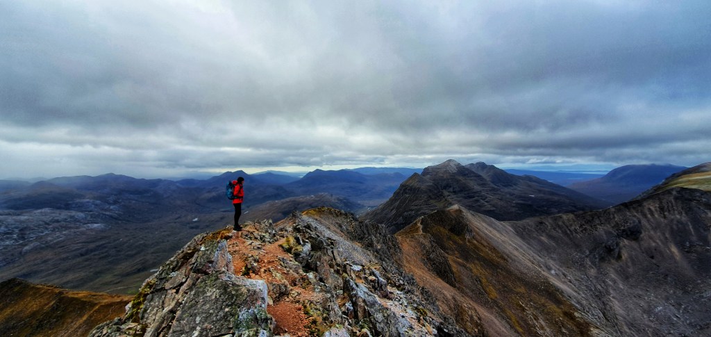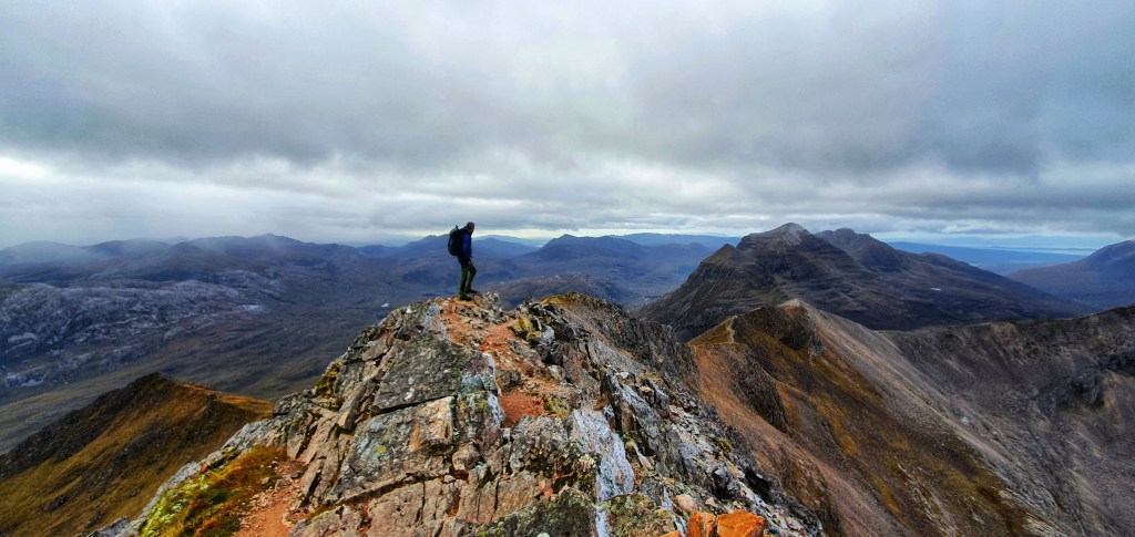 This is the highest of Beinn Eighe’s summits and its detached position makes it a fabulous viewpoint for most of the range. Although I didn’t want to leave this summit for various reasons we knew we had to get a move on as it was still a long way out so we returned to the bealach and back to that dreaded narrow gap.