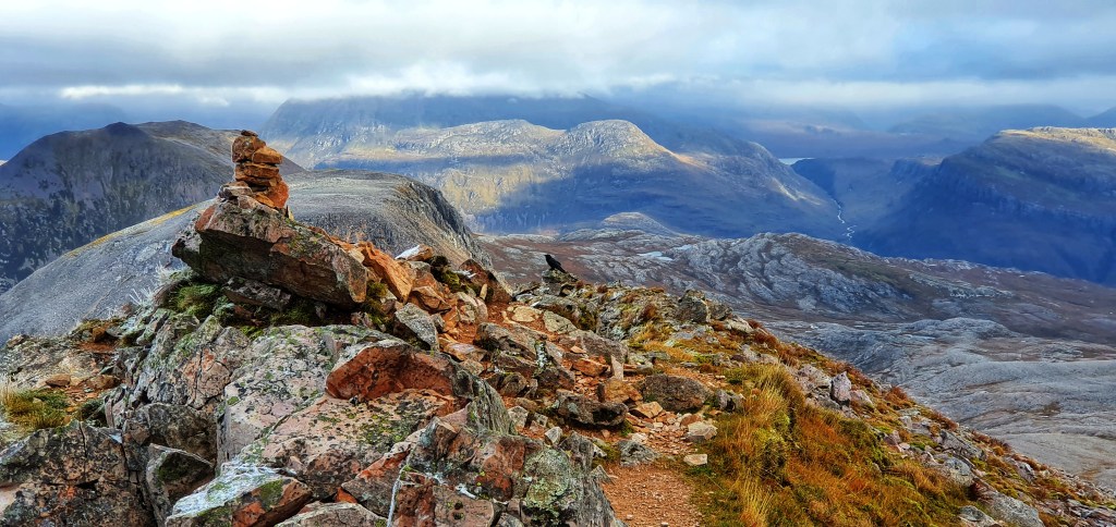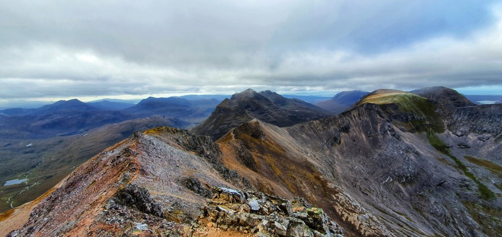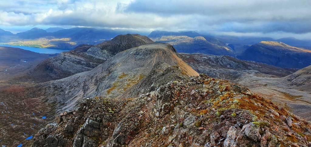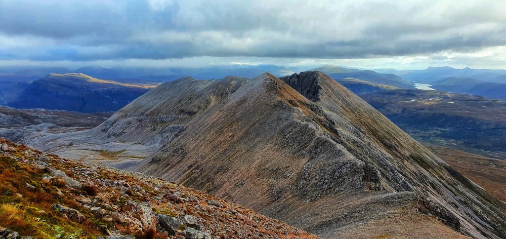 Beinn Eighe is a complex mountain massif which lies to the south of Loch Maree. Its huge and it forms a long ridge with many spurs and summits. It actually boasts 7 peaks, two of which are classified as Munros.